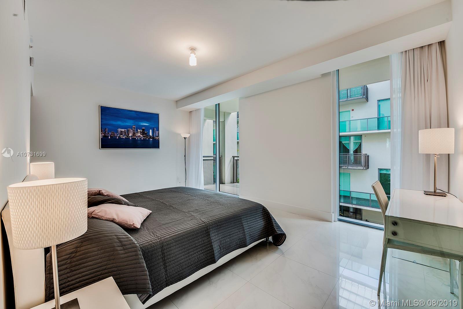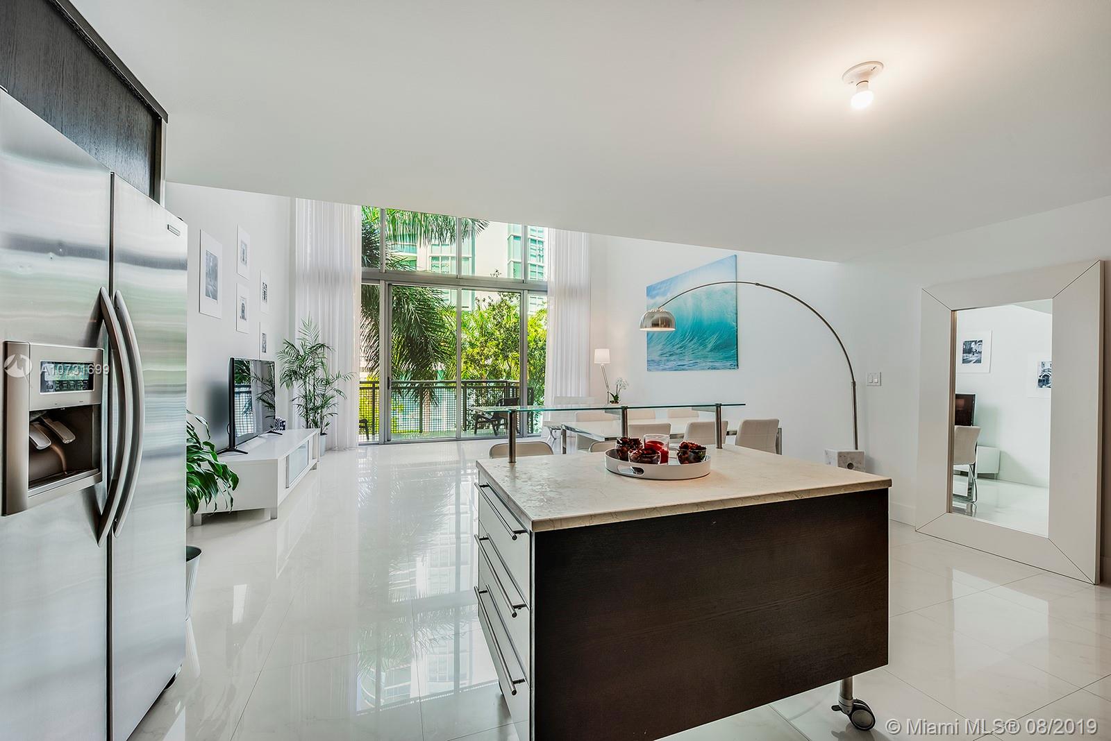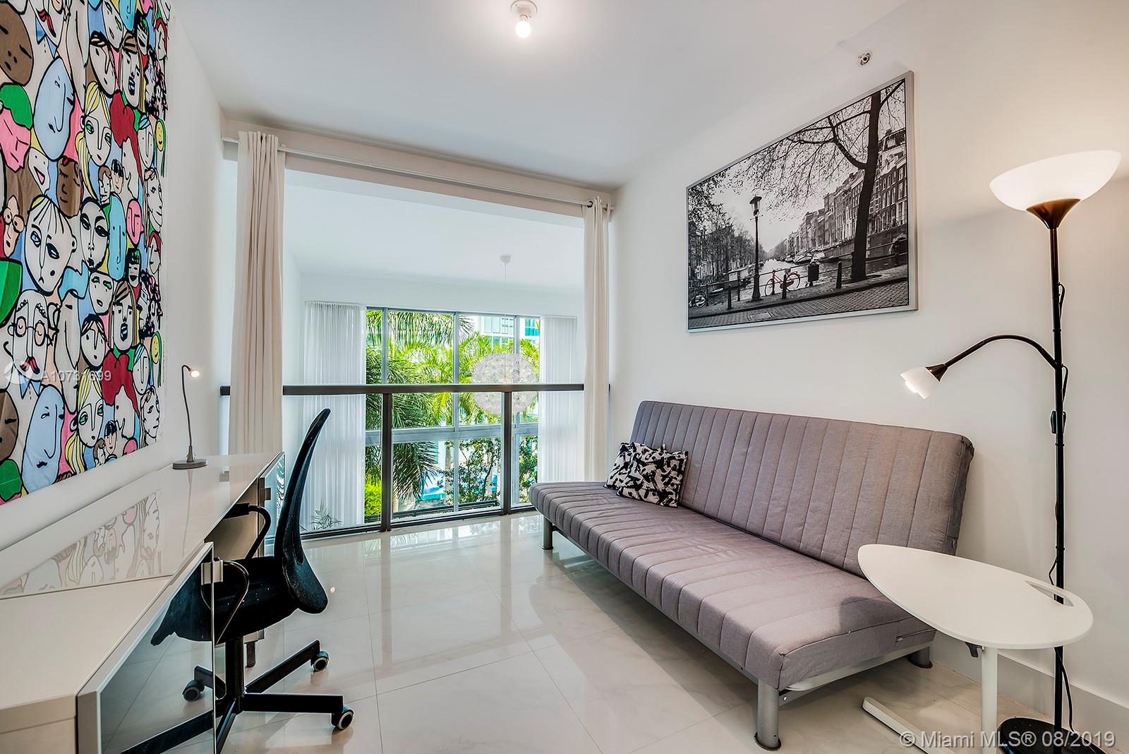 Beautifully designed and flooded with light! This modern and spacious 2-story, 2Bed/2Bath + Den boasts voluminous 18 ft. ceilings, floor to ceiling windows, new blinds, top-of-the-line modern European kitchens w/stainless appliances, and new Miele cooktop. The large master has a spacious walk-in closet and balconies. The master bath has a double shower, double sinks and Phillipe Starck fixtures. Terra Beachside Villas is a wonderful boutique building that sits between the beach and the intracoastal and offers an 80ft.heated swimming pool, fully equipped gym, jacuzzi, residents lounge/billiards room, low monthly fees and on-site management and 24-hr security all nestled in a Zen-inspired atrium.2nd assigned parking spot available for sale. Freshly painted.Can be sold turnkey.Easy to show!