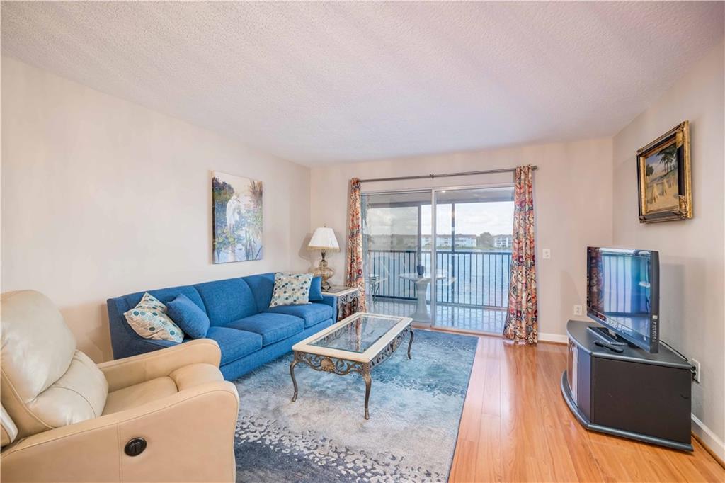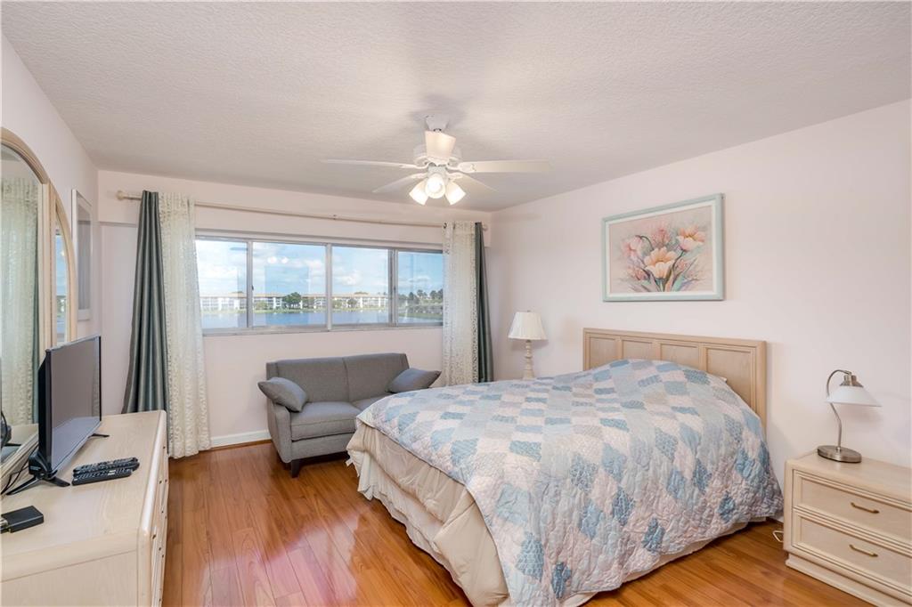 Spectacular lake view, immaculate condition, 2 beds 2 baths, Karanda model, 4th floor, Accordion Hurricane shutters and roll down hurricane shutters on the master bedroom, galley kitchen, Laminated floors on top of ceramic tile. A/C condenser is about 3 years old. Kitchen with white cabinetry and white appliances, recessed lights, knockdown texture ceiling. Walking shower on the master bathroom, 2 walk in closets, utility closet. Excellent 55+ community to live in. Great amenities and entertainment. Pools, gyms, golf, restaurant, tennis, clubhouse, theater, free transportation for residents. No rentals for the first 2 years, no pets.