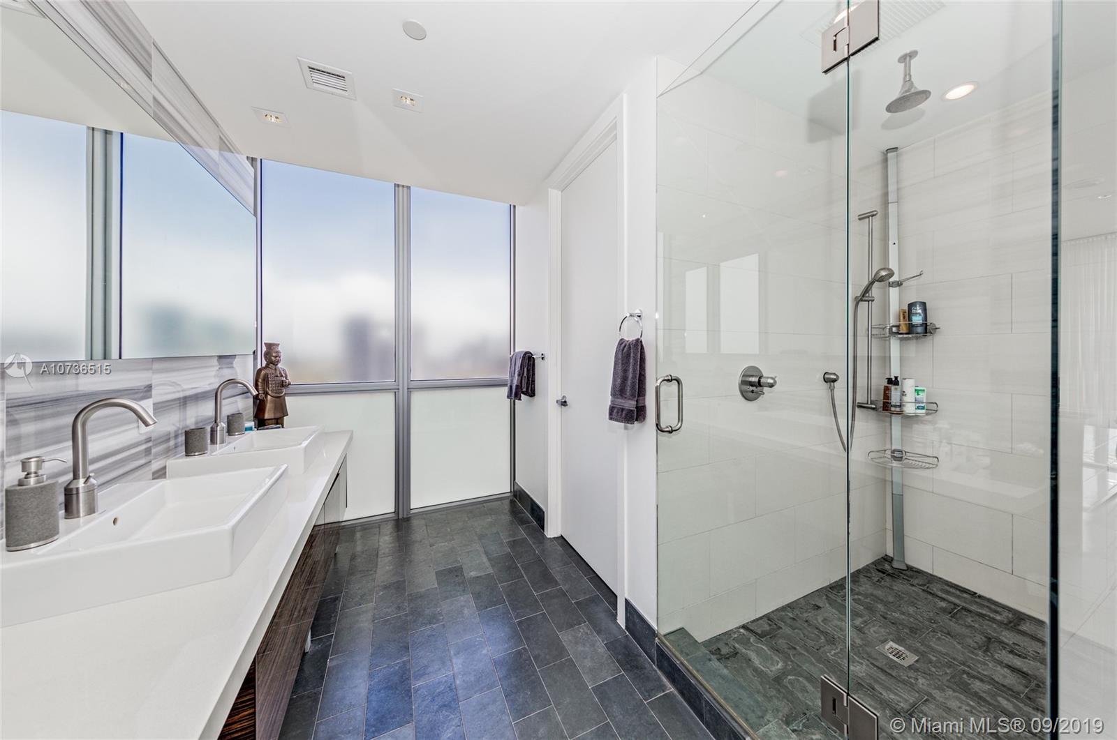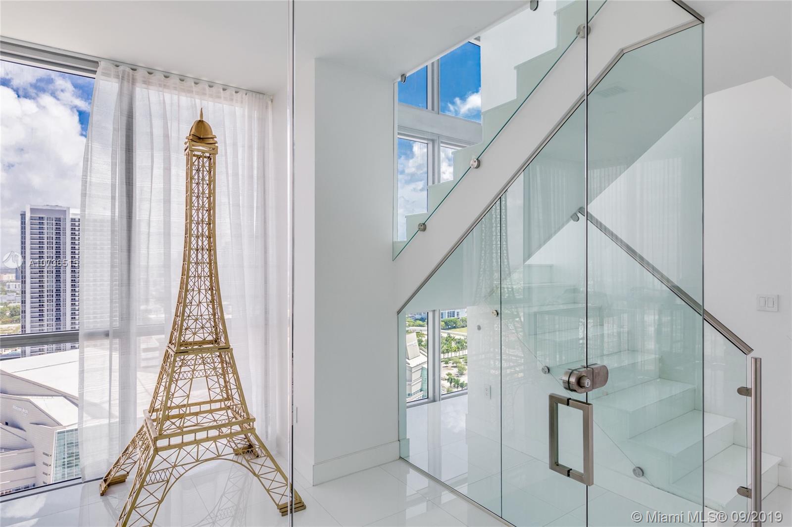 Beautiful Corner two story unit 2 Bed 3 bath plus office/den enclosed in glass. White porcelain floors throughout with stair railing, electric Somfy blinds. Amazing views of Miami Beach and Government cut.