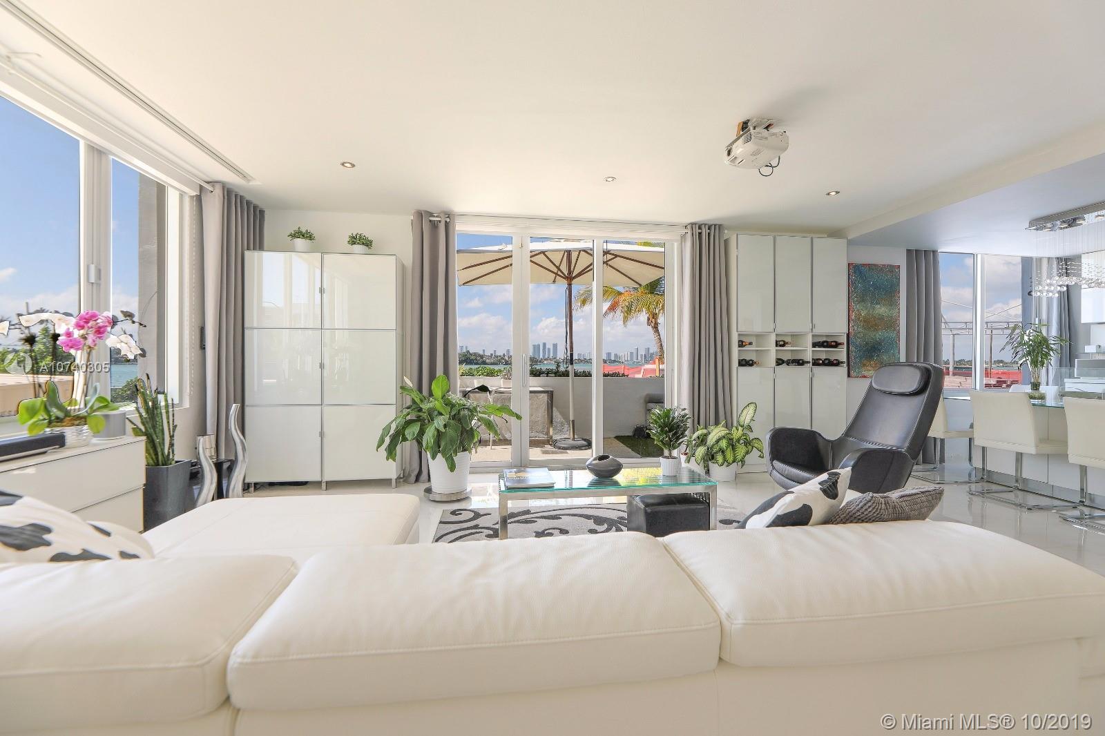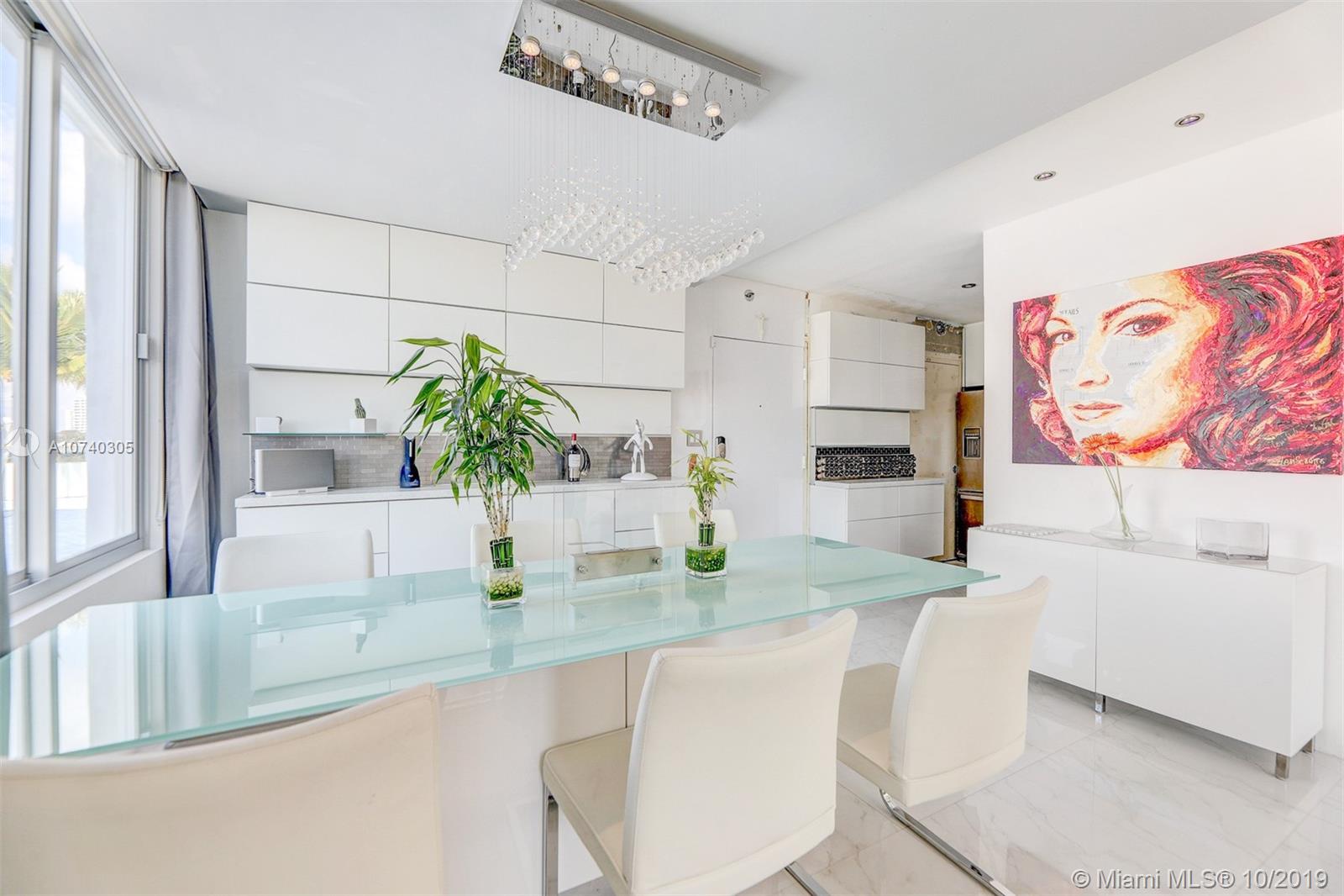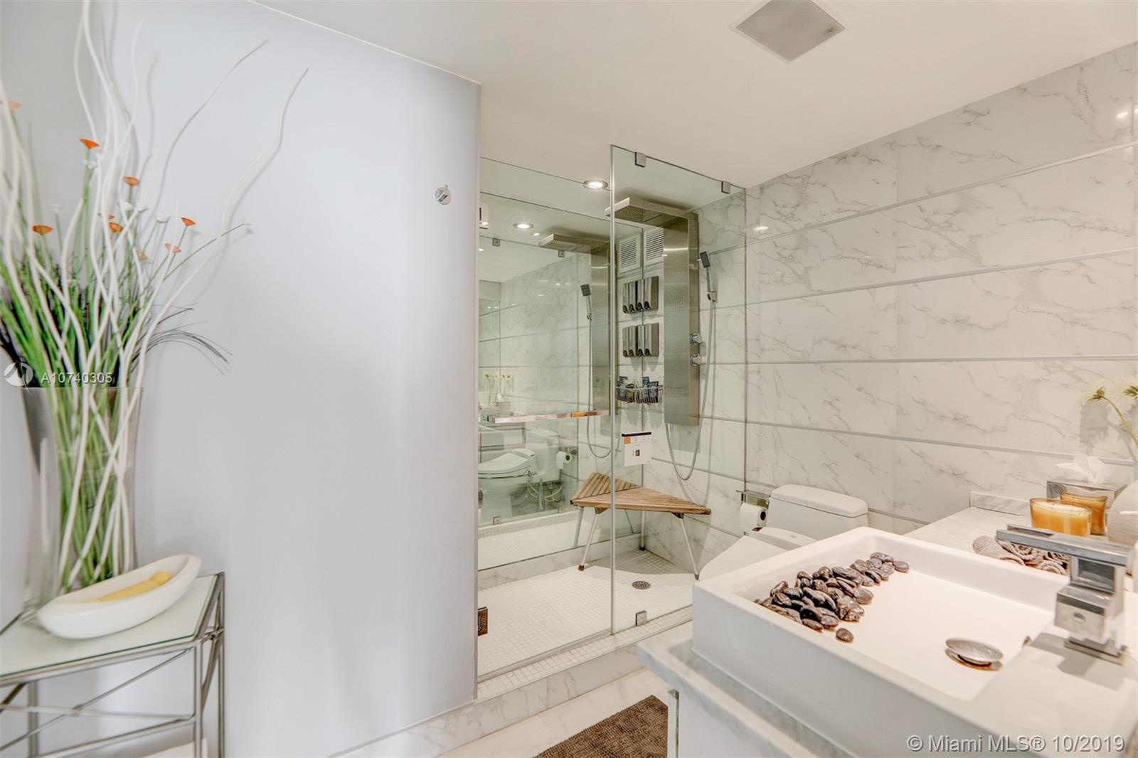 Designer bayfront unit w direct bay views. Beautiful sunsets f/ the expansive outdoor terrace. Direct quick access to pool, jacuzzi + street. Porcelain white carrara marble floors throughout. Ultra modern white finish. Modern kitchen w quartz counters, new 2018 stainless steel appl. Custom lighting, closets + barn doors. Recently completed hurricane proof windows + slider replacement. New 2018 upgraded 3-ton AC. Fully automated home for entry, lights, music + AC. Recessed projector screen in Living. New 2019 solar shades throughout. Most desirable corner line in the bldg. Steps f/ Whole Foods, Walgreens, Publix, shopping and dining. All furnishings also available for move-in ready.