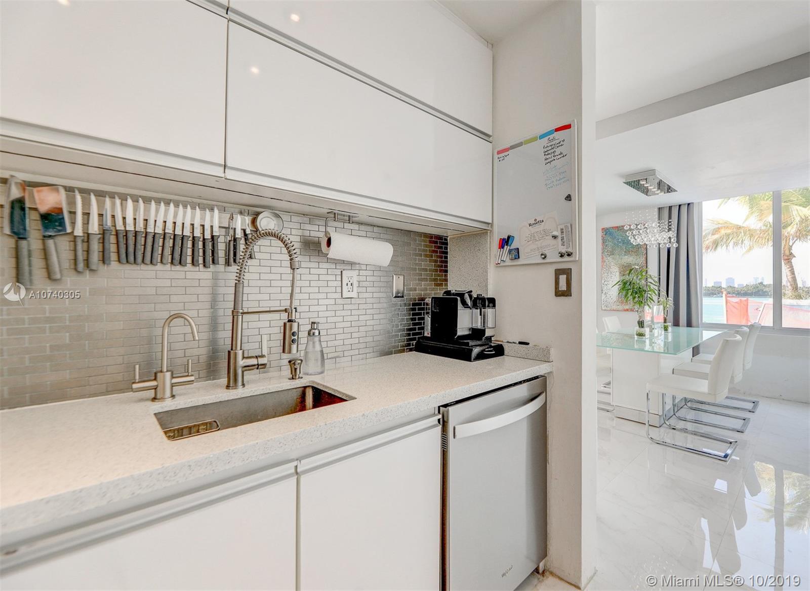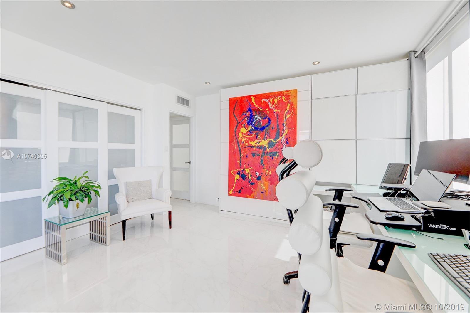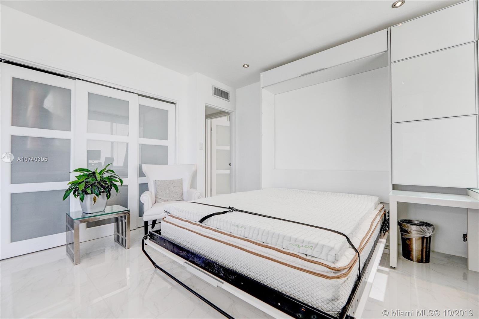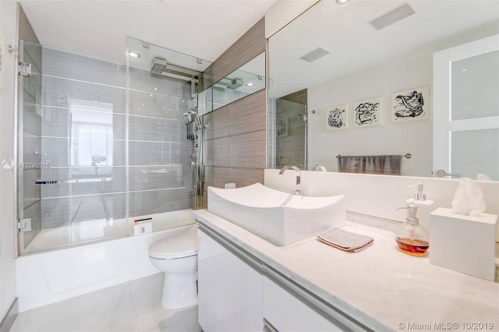 Designer bayfront unit w direct bay views. Beautiful sunsets f/ the expansive outdoor terrace. Direct quick access to pool, jacuzzi + street. Porcelain white carrara marble floors throughout. Ultra modern white finish. Modern kitchen w quartz counters, new 2018 stainless steel appl. Custom lighting, closets + barn doors. Recently completed hurricane proof windows + slider replacement. New 2018 upgraded 3-ton AC. Fully automated home for entry, lights, music + AC. Recessed projector screen in Living. New 2019 solar shades throughout. Most desirable corner line in the bldg. Steps f/ Whole Foods, Walgreens, Publix, shopping and dining. All furnishings also available for move-in ready.