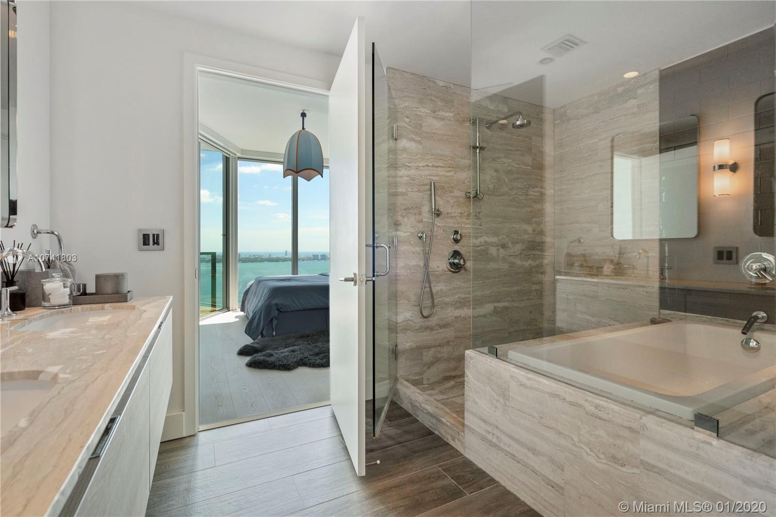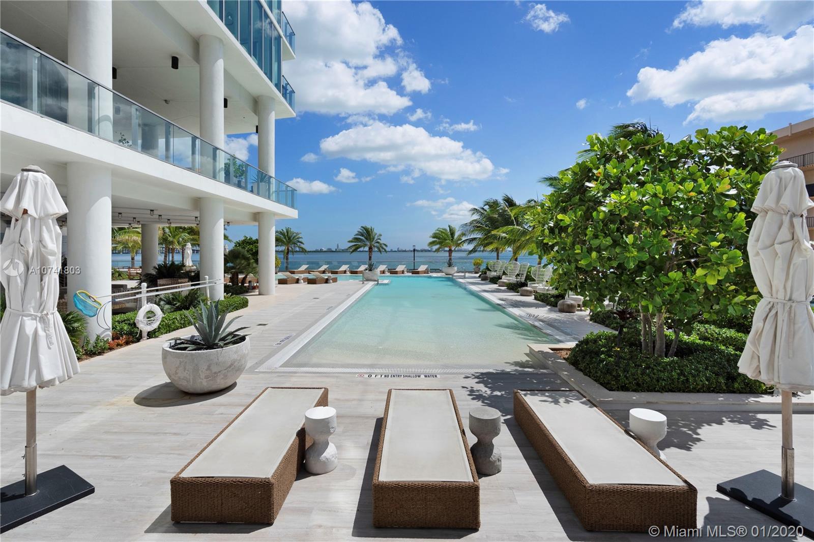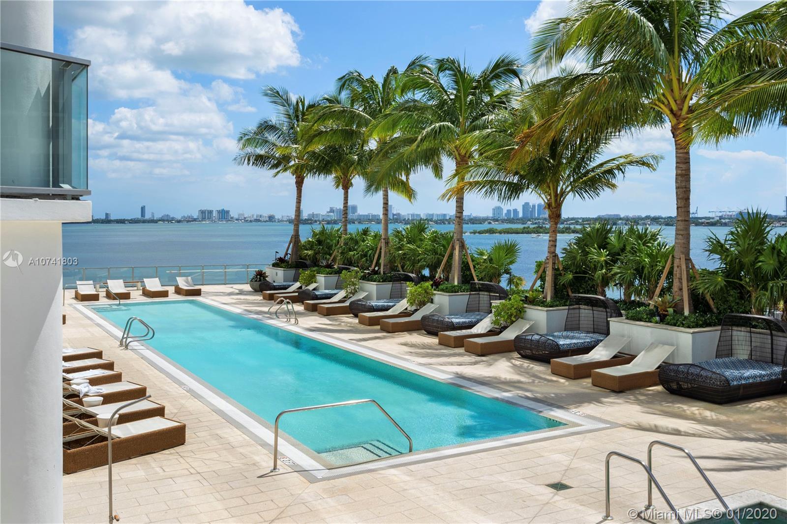Stunning 2 bedrooms 2.5 baths high floor unit with incredible bay views and the South Beach skyline. Live like you are staying in a luxury 5 star hotel with 2 pools, tennis courts, beach club cabanas, fitness center, sauna & steam room, massage rooms, business center, valet, concierge and bbq area. Parking space and a 9x4 storage unit is included.This condo offers high quality upgrades with light oak wood floors, remote control electrical shades and smart lighting. Open kitchen with high-end appliances and floor to ceiling windows affording water views everywhere. Enjoy Edgewater’s extremely convenient location, only 10 mins away from the beach and MIA airport, minutes from wynwood, design and business districts. Truly a special property for the right buyer. Easy to show.