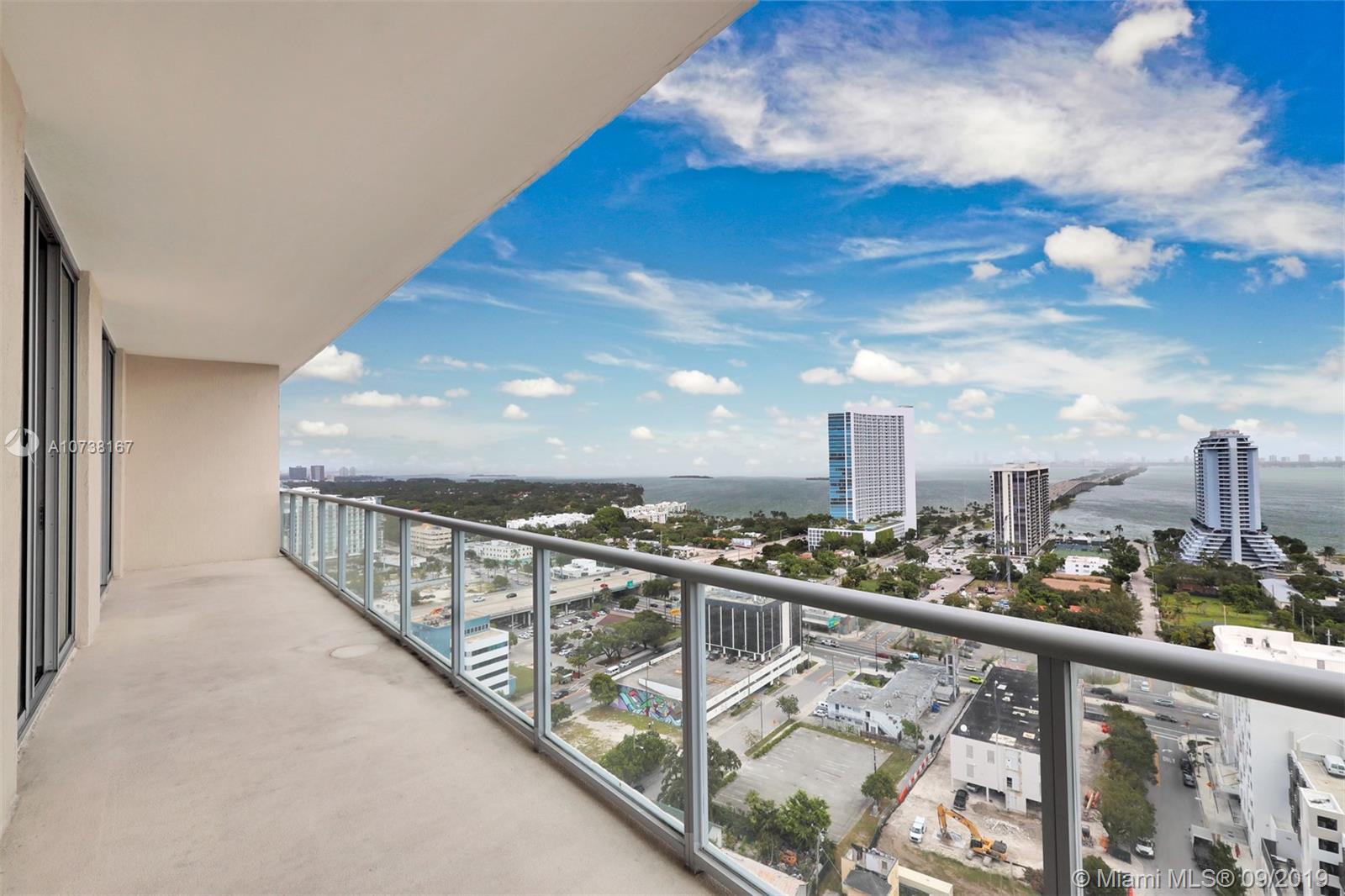 Location, Location Location, Sweeping views of Biscayne Bay and city skyline from this east facing, 22nd floor 2 Bed/2.5 Bath condo in highly sought after 2Midtown. Residence features travertine marble flooring, finished 22nd floor 2 Bed/2.5 Bath home in highly sought after 2Midtown. Full size washer/dryer. Entertain on the spacious outdoor terrace. Resort style living includes full-service amenities including valet, doorman, concierge, pool-side towel service, steamroom, sauna, plunge pool and finish off with a hot tub. Separate play area for the kids. Surrounding the building is some of the hottest restaurants, shops and nightlife in Midtown, the Design District and Edgewater have to offer. Rare: This residence Includes TWO covered parking spaces. Pet friendly