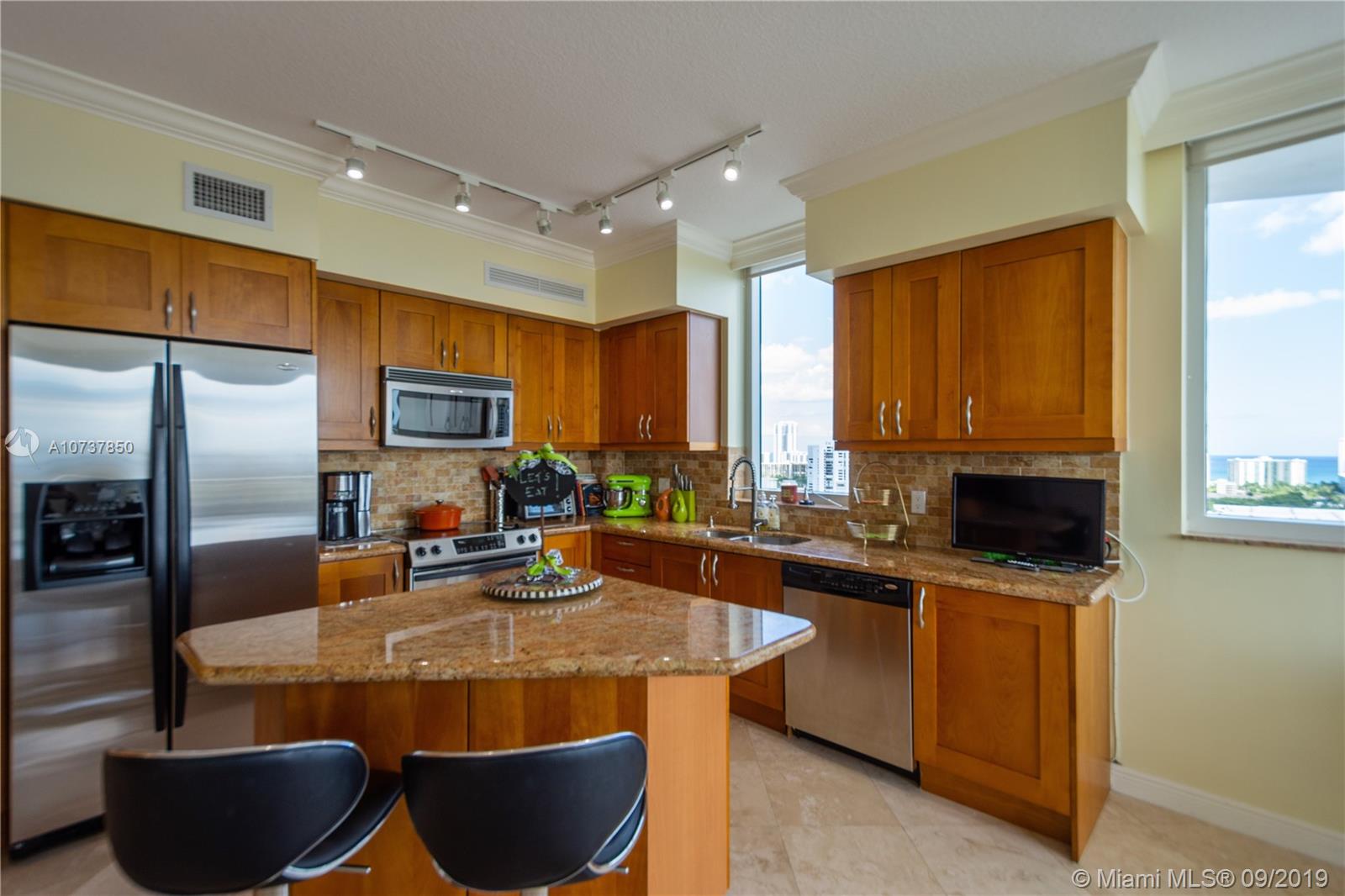 Beautiful corner unit featuring stunning unobstructed South East views where you can see the Ocean, City, Intracoastal, Golf and Gulfstream Park. The unit features an extensive open floor plan, wrap-around terrace, marble/wood floors, built-in closet system, pull out pantry cabinets, crown molding shades and much more!