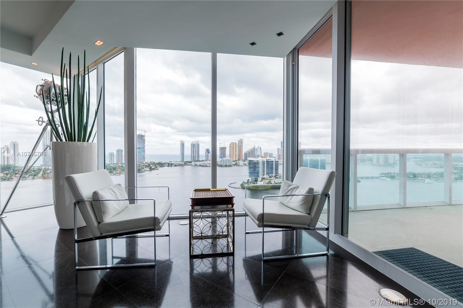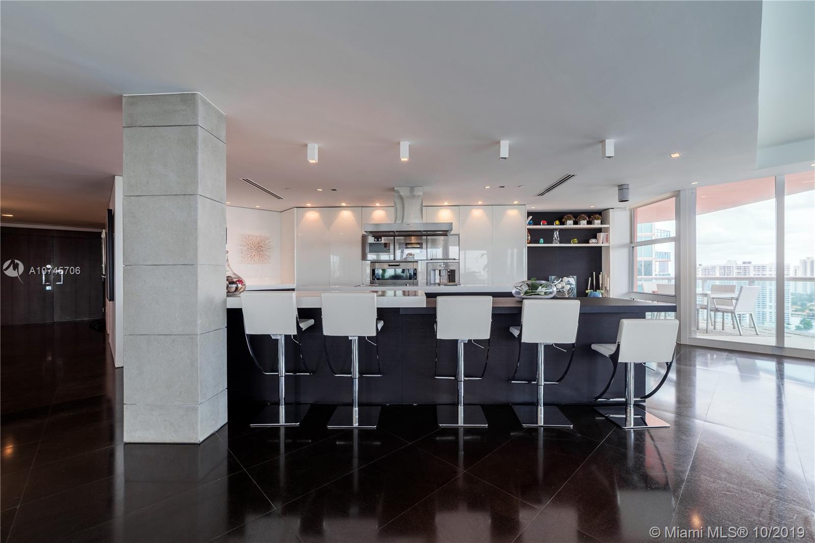 Elegant/contemporary residence completely renovated 4 BED, 4 1/2 BATHS in the heart of AVENTURA. Double elevator opens to a private foyer leading into a stunning open floor plan by breathtaking/panoramic 180' views of the Bay, City and Atlantic Ocean. Skillfully designed KREON lighting system and motorized blinds throughout the residence. Gourmet Italian VARENNA kitchen with GAGGENAU appliances and open island for entertaining. Split floorplan with Master Suite in private wing. All baths fitted with DOMBRACHT plumbing fixtures, DURAVIT accesories. Three stunning guestrooms with POLIFORM closets. Black granite floor and impact glass windows throughout the entire unit. Amenities include swimming pool, exercise room, Marina, Tennis court, Boat dock, Bbq/Picnic area. Valet parking.