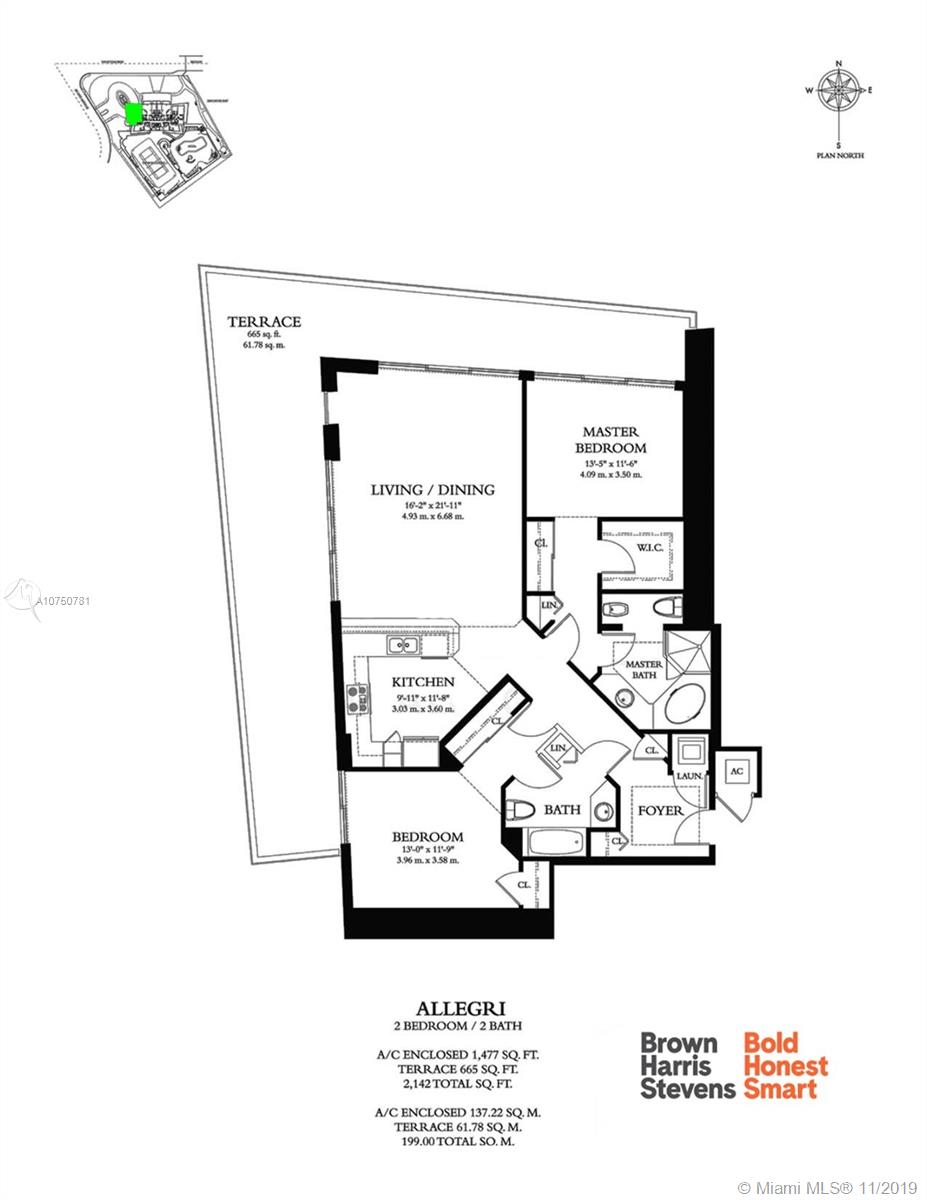 Walk off the elevator and proceed through a serene private foyer one walks into a gorgeous picture postcard.This 1,757sqft 2 bedroom 2 1/2 bath vibrant apartment is all about panoramic views of the treelined, lush gardens at the Continuum with direct ocean views from every angle. Sitting in the modern bright living room or standing in the kitchen all you see is beautiful beaches and ocean. Walking out to the private large balcony, the Master, the guest bedroom along with the living room have direct sliding door access. The intelligently designed floor plan has bedrooms on opposite sides of the living space, the master has massive walk in closets and a spa inspired bathroom. With marble floors, 10ft ceilings, top of the line appliances this apartment is the epitome of a luxurious lifestyle.
