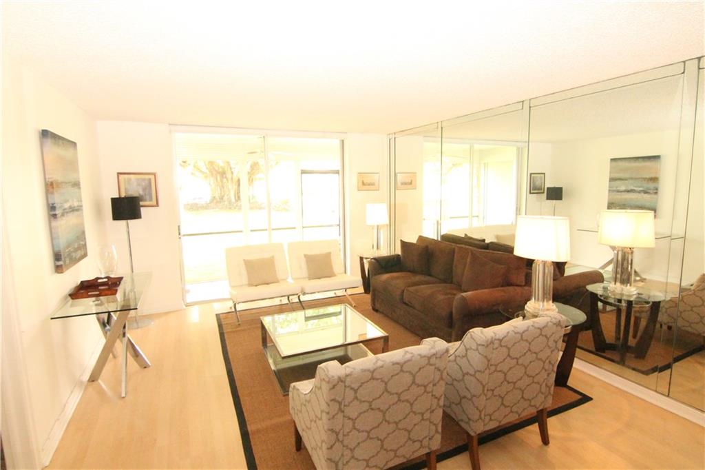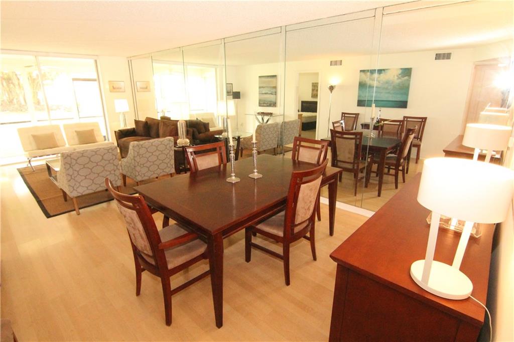 Beautifully remodeled two bedroom two bathroom 1st floor unit with a golf course view. Newer kitchen with granite counters, laminate wood flooring in the living room and dining room, carpet in the bedrooms. Furniture is negotiable. The association boasts free golf(Except cart fees), fourteen tennis courts, seven pools, restaurant, pro-shop, Billiards, library, gym, self car wash, courtesy buses, common laundry in each building, 24 hour security. Please ask for more details on association requirements.