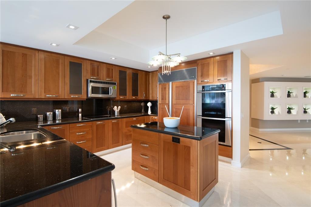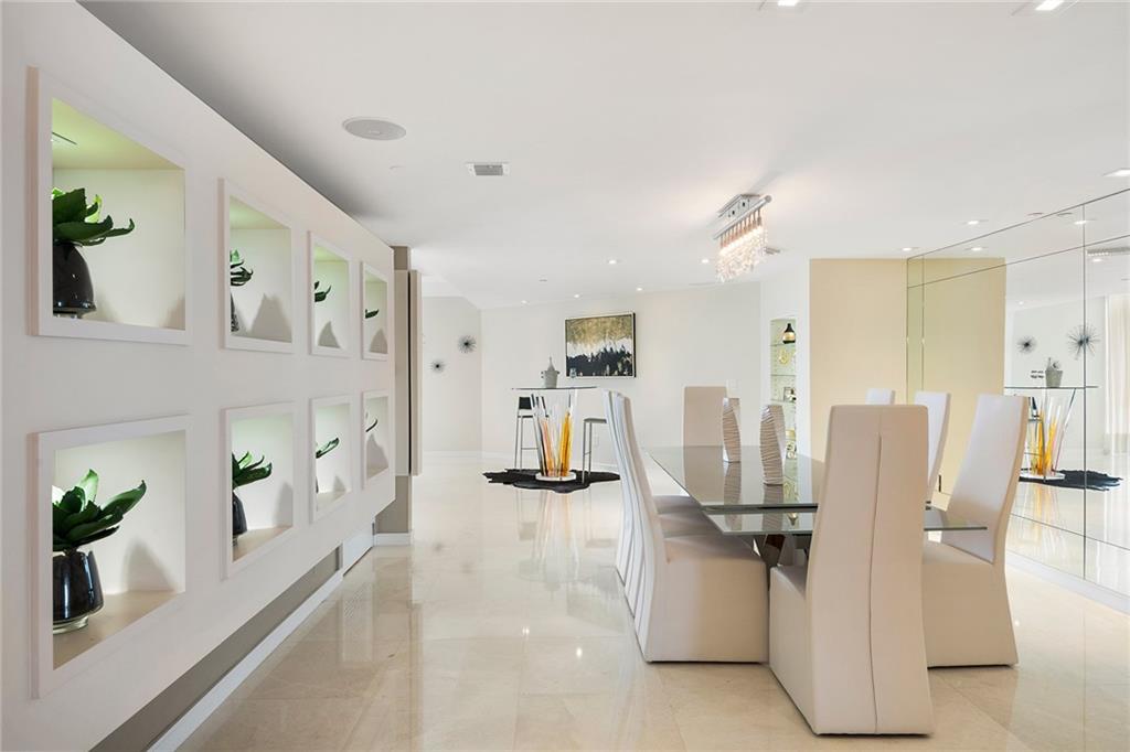 Luxury and Refinement overlook nothing but the Ocean in this spacious 3500 sf condo that feels like a 'house' on the beach. Exit the elevator and into your private foyer. The reflective mirrored Formal Dining Room and unique built-ins will have your guests in awe from the moment they enter. LED & Contemporary Lighting Fixtures, polished marble floors, 9' floor to ceiling impact windows & doors, 3 living areas, 3 bedrooms all ensuite. Gourmet Kitchen w/Miele & Sub-Zero appliances opens to the Family Room. A separate den/office area can also serve as an entertainment room or 4th bedroom. The elegant Master Bedroom & Living Room provide Direct views of the Ocean. Two expansive balconies, 2 Parking spaces and Storage. Fabulous Fitness Center and Community Rooms. Pool, BBQ area, and 2 dog runs.