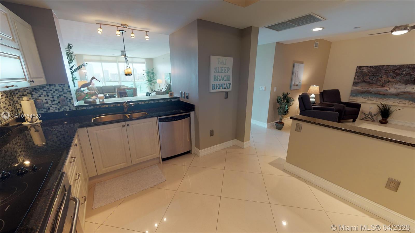Beautiful remodeled condo is one of the best in Aventura Marina II. The expanded gourmet kitchen has stainless steel appliances, Italian cabinets, under cabinet lighting, granite countertops and an extra large refrigerator/freezer. Bedrooms have hardwood floors and the master walk-in and second bedroom closets have built in organizers. The master bathroom has a glass shower and all three bathrooms have frosted glass doors. Laundry room has a full size washer/dryer and built-in storage cabinets. The unit also has an open den, 4 ceiling fans and comes with Two Deeded garage parking spaces. Some of the amenities are a great fitness center, two pools, hot tub, billiard room, cable TV, water and internet. All furnishings can be included. Walking distance to Founders park, Aventura Mall.