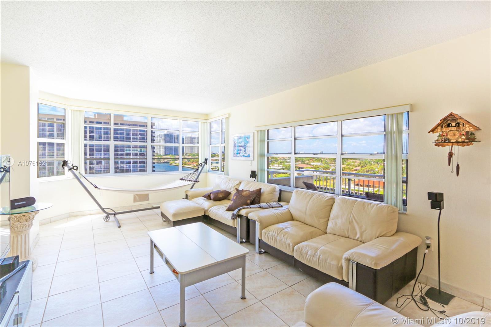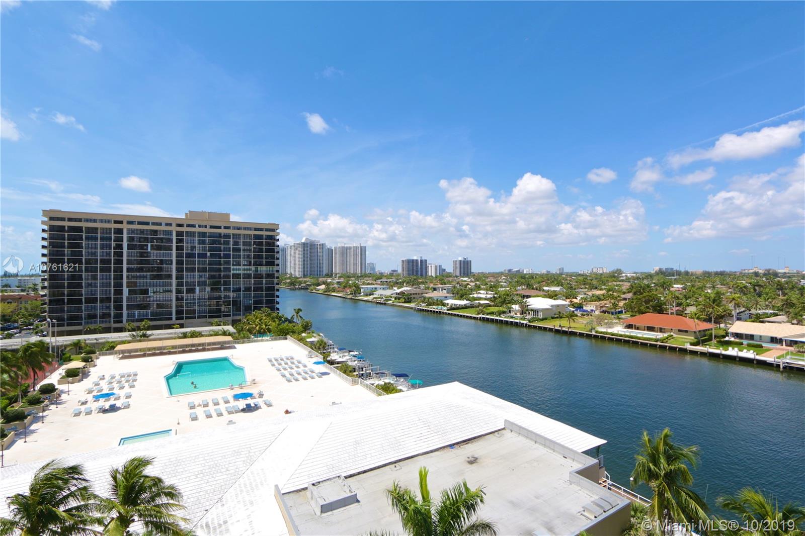 Beautiful Intercoastal views from this corner 2 bedroom, 2 baths. Ceramic tile floors, carpeting in the Bedrooms. The unit is currently rented for $1,800 month, keep the tenant or tenant will move out. Air conditioning and basic cable included in the maintenance. Amenities include 24-hour security, valet, 2 restaurants, two heated pools, tennis courts, shuffleboard, basketball, kids playground, golf putting, hair salon, mini-mart, billiard room, pool snack bar, beach service, exercise room, main Gym has sauna and steam rooms, marina with boat lifts. Easy to show call listing agent.
