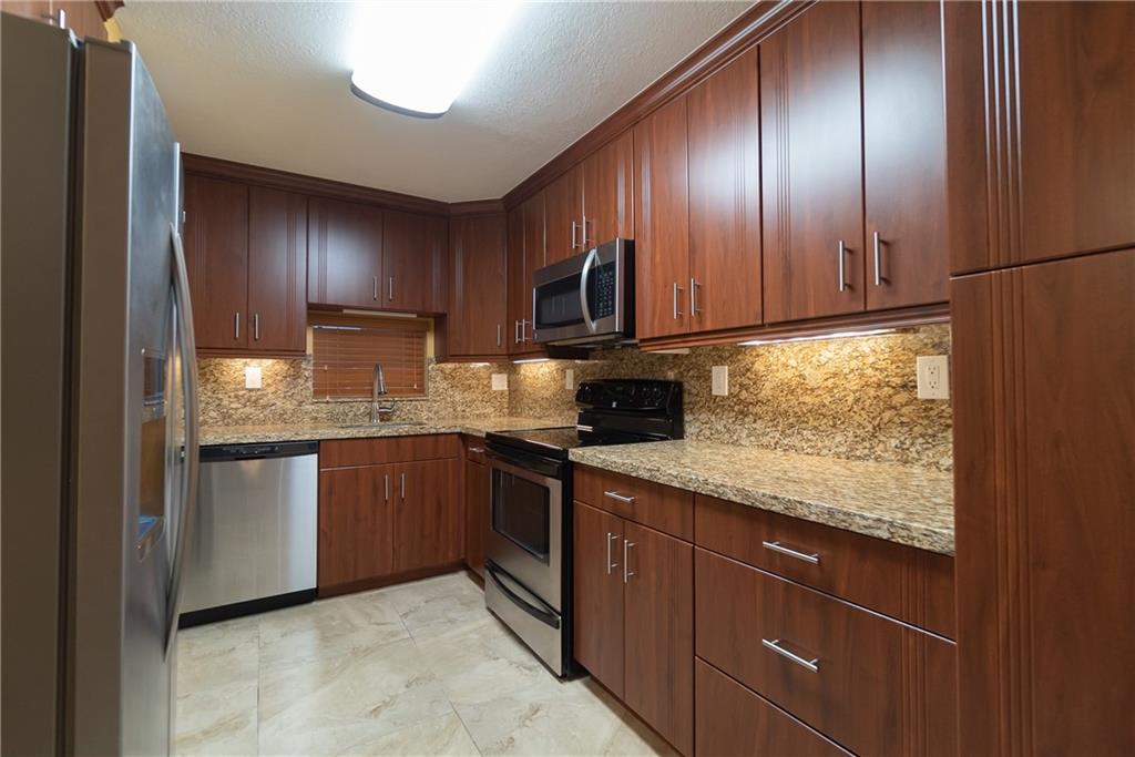 COMPLETELY RENOVATED! (Move right in),1ST FLOOR CORNER! (Convenient & Quiet) WASHER/DRYER! (Private), IMPACT GLASS! (Noise & Storm protection) ENCLOSED PATIO! (Extra Living Space) Ceramic tile throughout. FULLY UPDATED KITCHEN (Granite, SS Appliances, Cherry Cabinets), 24 hr guard gated. Recreation Lease PAID UP IN FULL! FREE golf (except cart fees) on two 18 hole courses (PGA & Par3);Amenities include : Restaurant,Billiard Room, Bbq/Picnic Area, Clubhouse, Common Laundry, Courtesy Bus, Exercise Room, Heated Pool, Library, Putting Green, Sauna, Shuffleboard, Tennis, Pickle Ball, Bocci Courts,Vehicle Wash Area, Electric Car Charging Station. NO MEMBERSHIP EQUITY! Close to shopping, dining & highways. 15 min to the beach. Association says 55+ age required community. BEAUTIFUL! MOVE RIGHT IN!