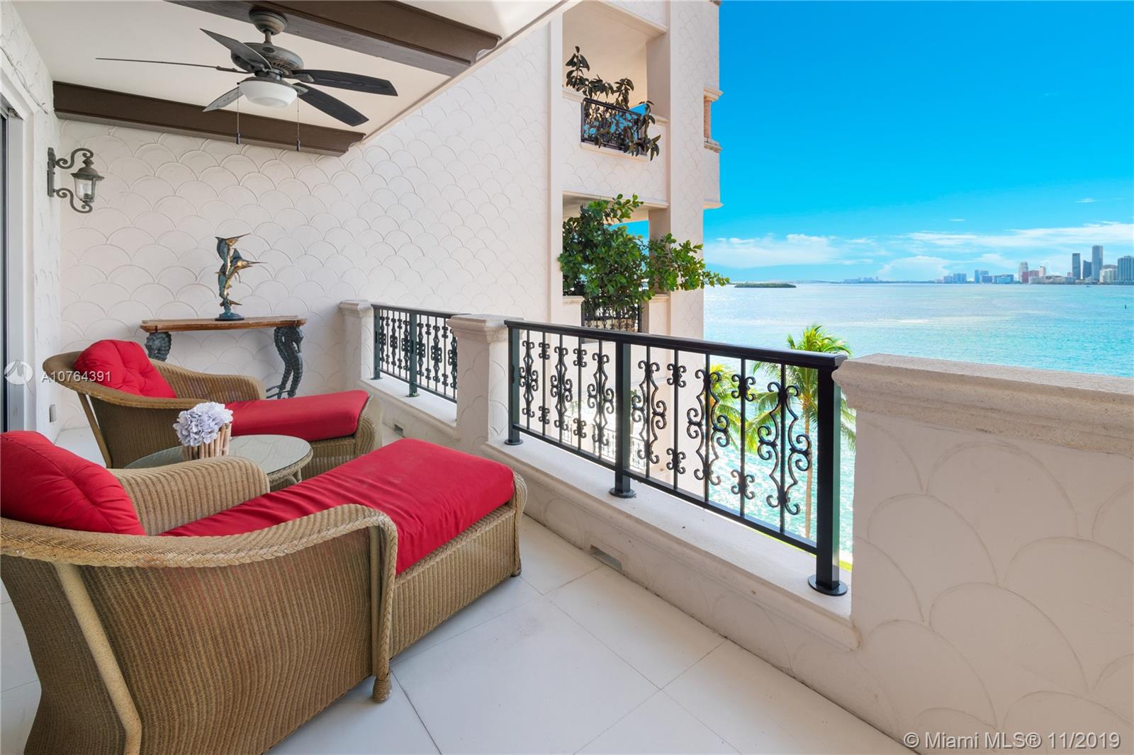 Experience Fisher Island living at it's finest in this completely renovated 5th floor Bayview unit with mesmerizing views of the Miami Downtown Skyline, Biscayne Bay and Fisher Island. It showcases 3 bedrooms and 3.5 baths, a state of the art kitchen with top of the line appliances, renovated bathrooms, impact glass doors, corner unit and expansive terraces perfect for entertaining. The unit is offered fully furnished. Easy to show!