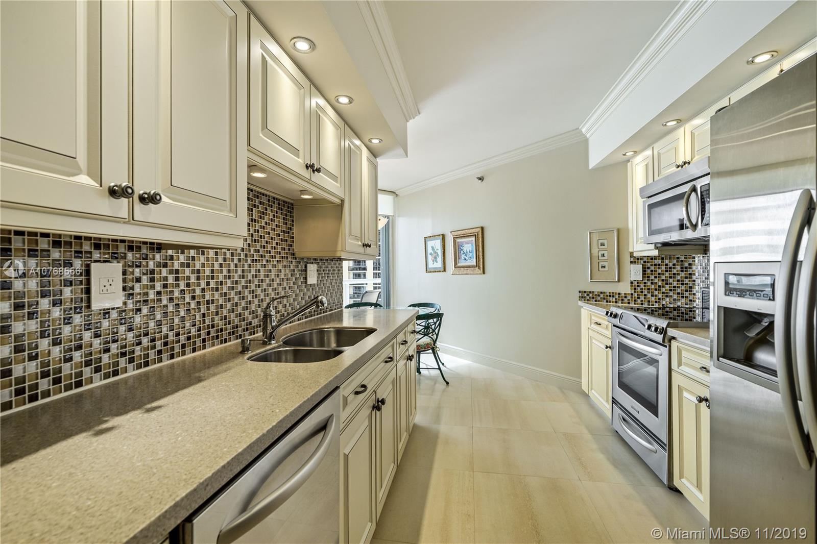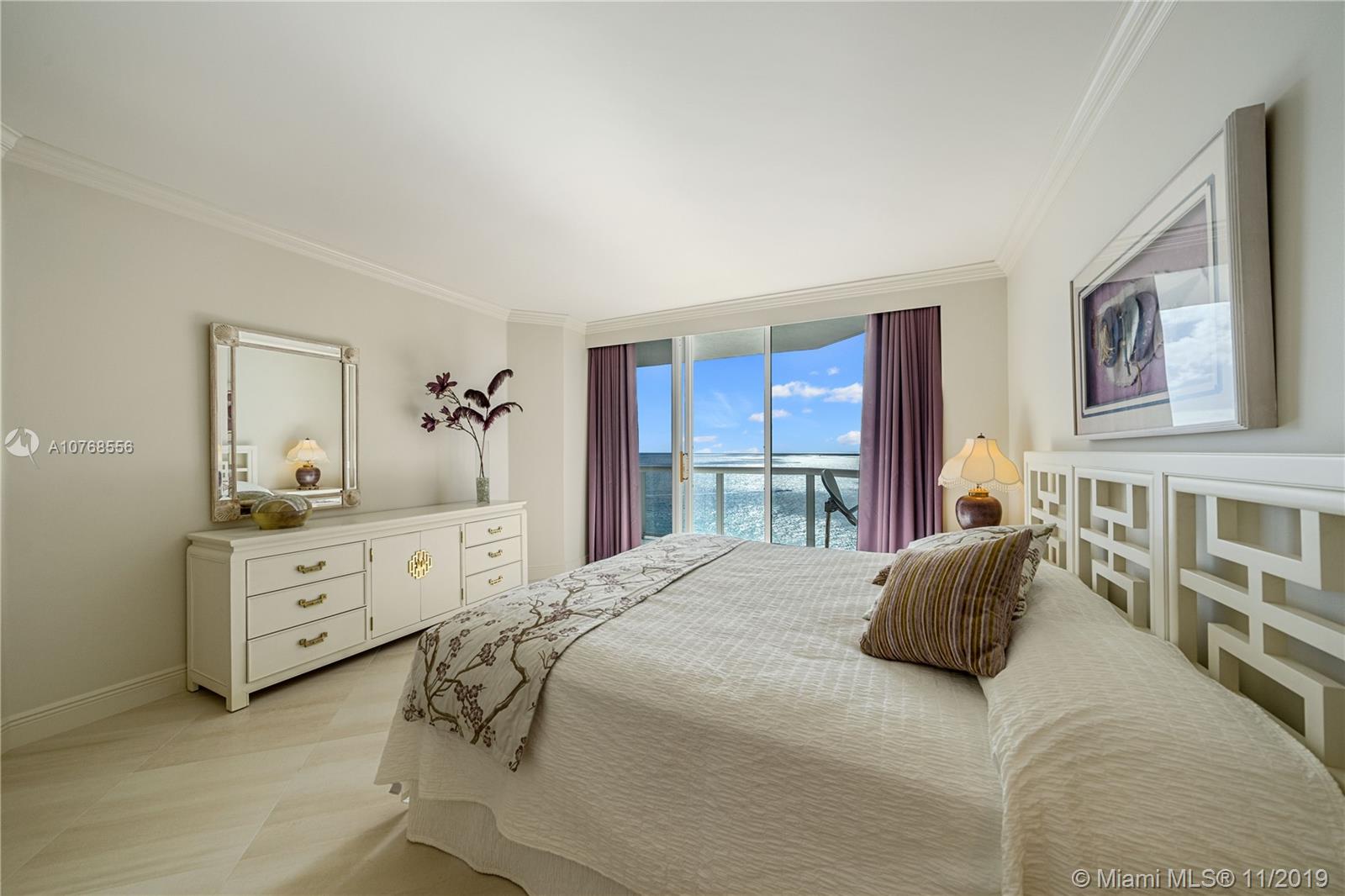 Oceanfront & city view, sunrise & sunset from this Pristine condo designer-remodeled corner unit furnished of 1760sf, 2 bed/2 baths + Den/Or formal Dining Room, Rap-around Balcony, luxe- designer bathrooms. W/D in unit. The building has refurbished Lobby & hallways. It is a resort-style CLUB full service & Amenities; hair salon, Spa, Sauna, Steam Room, hot tub, heated pool, oceanfront fitness center & yoga/pilates room. Basketball, Racquetball, Tennis courts, boat docks. This building has a full services day club restaurant with beach valet service, evening formal Ocean Dining restaurant, valet 24 hr, Gated Security, Attended lobby. Fees:$750 annual mandatory expense food & beverage restaurant club, monthly condos fee of $1,127. POA $291. quarterly & beach club fee $749 quarterly.
