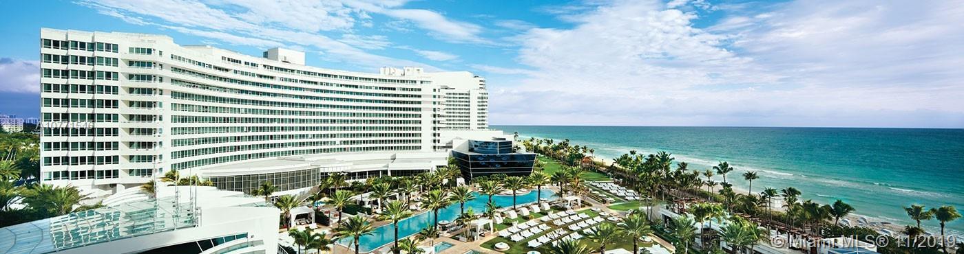 Turnkey Junior Suite/Studio with Intracoastal view at Fontainebleu Tresor II. Fully Furnished with King size bed , Flat TV . Spacious bathroom with separate Tub and Shower. Living room with full size sofa bed, desk with computer. Kitchenette with microwave, stove and refrigerator. Balcony overlooking the Intracoastal. Impact Windows. Complimentary daily Breakfast at the Owner's Lounge next to Tresor Swimming Pool. Enjoy the luxury amenities of the Fontainebleu resort on 22 oceanfront acres. Award winning Restaurants, LIV night club, Lapis spa & state of the art fitness center. Participate in the Hotel Program and receive income. SHOWING on Weekdays only. 24 hr. notice.