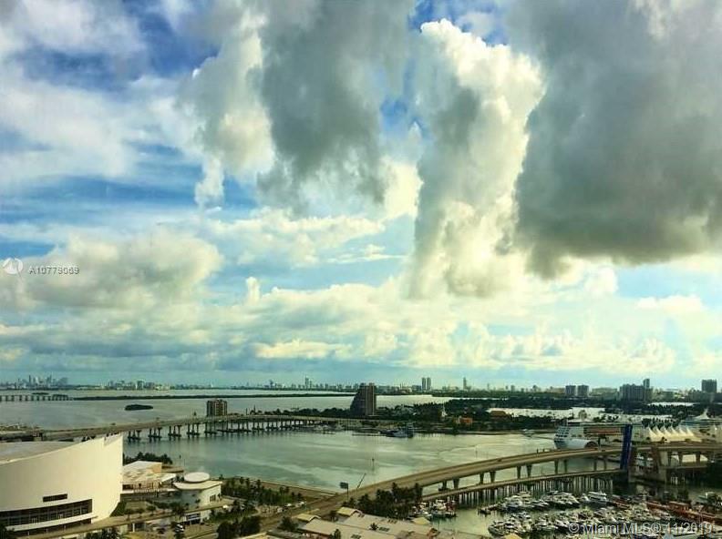 Living in a Penthouse with full Bayview in the midst of booming Downtown at an affordable price! This unit is a great investment: 30-day rental allowed 12 times per year. Turnkey furnished with household items. Stained concrete floors, European kitchen cabinets. Walking distance from many shops, restaurants, and food markets, American Airlines Arena, Bayside Marketplace, Bayfront Park, and Adrienne Arsht Center. Just across from free Metromover College Bayside station, 5 minutes to South Beach, 7 minutes to Airport. Amenities include heated swimming pool, soothing spa, lava rock sauna, and a fitness center overlooking the city views. 24-hour concierge, gated garage parking, and 24-hour controlled access system. Pet friendly.