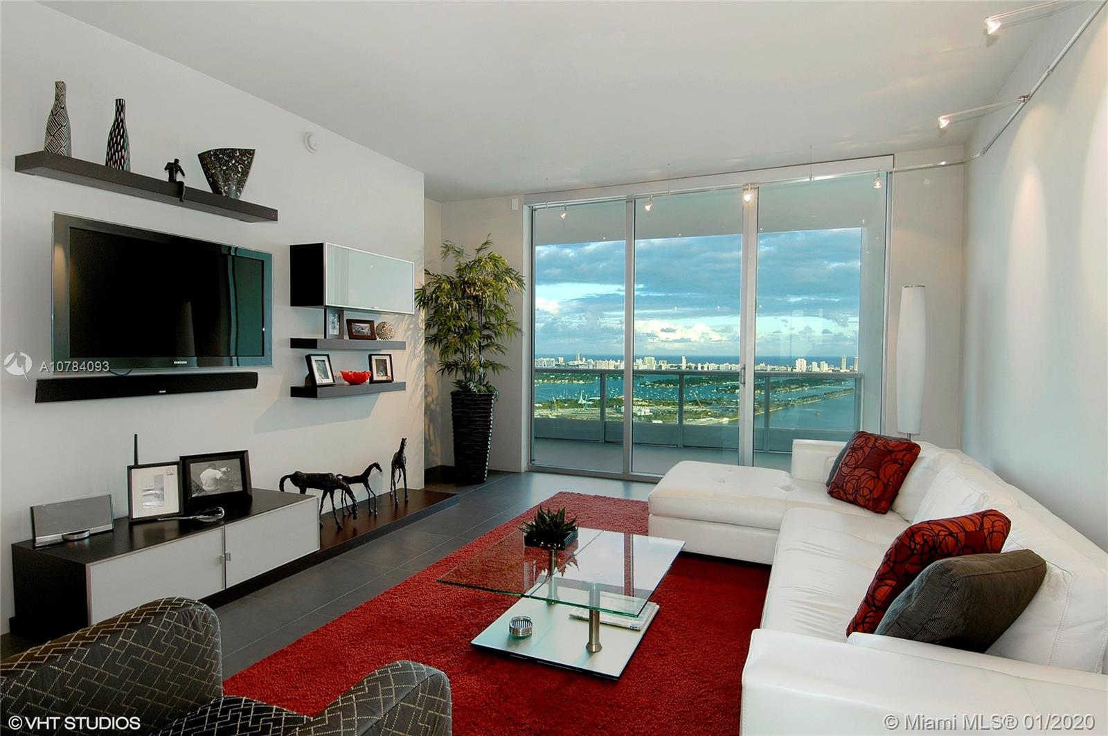 This luxury apartment has over $200,000 of upgrades. Featuring a fully furnished designer furniture by Sklar plus Lualdi Doors and closets by Lux. Iberia Tiles Floors throughout. Plasma TVs and Electric Shades for Living Room,, Dining Room, Master Bedroom. Direct east views of Biscayne Bay, Intracoastal, Ocean and west views of the Miami Worldcenter. Private elevator lobby with direct entry to unit foyer. 1579 square feet per tax records and 1712 square feet per floor-plan. Master Bedroom with walk-in closets that are completely built out. 2nd bedroom with complete built closets and has direct entry to terrace. Full service gym, spa, private theater, huge playroom with pool table. Pool deck with 2 pools, towel service and barbecue gas grills. 2 level lobby with private motor lobby.