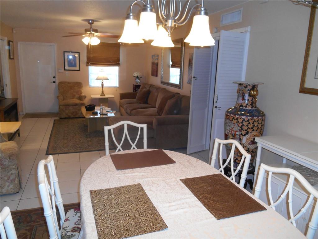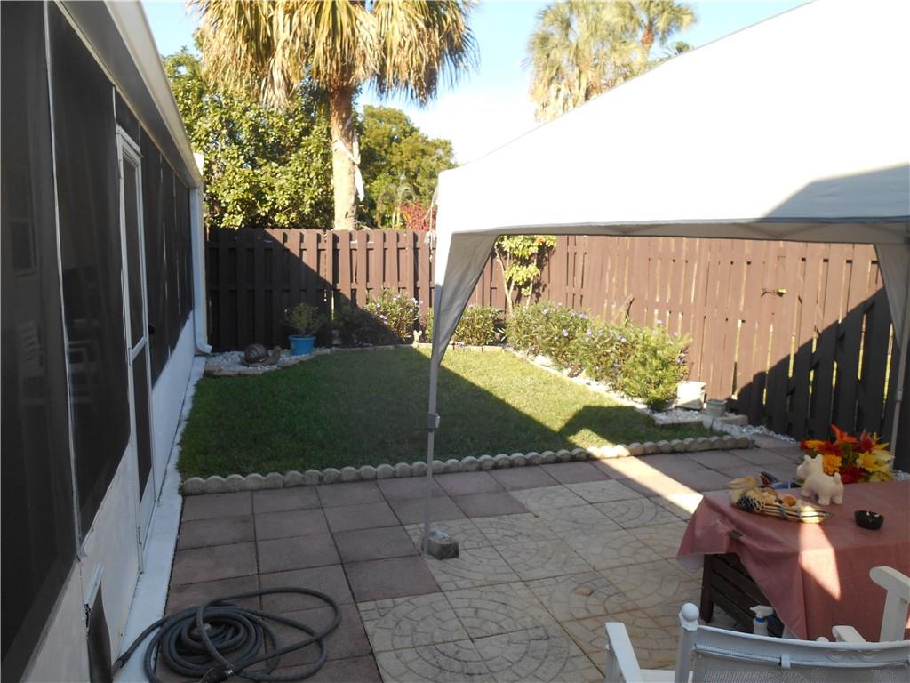 Villa that is completely updated. New kitchen with granite countertops,cabinets,back splash and stainless steel appliances. Bathroom completely updated including spa tub. New central air. New roof and exterior paint. Tile floors. Utility room off kitchen with washer and dryer. French doors off dining room to screened porch. Private/fenced back yard with gazebo. New gutters. Storage area. 2 assigned parking spaces in front of villa.
