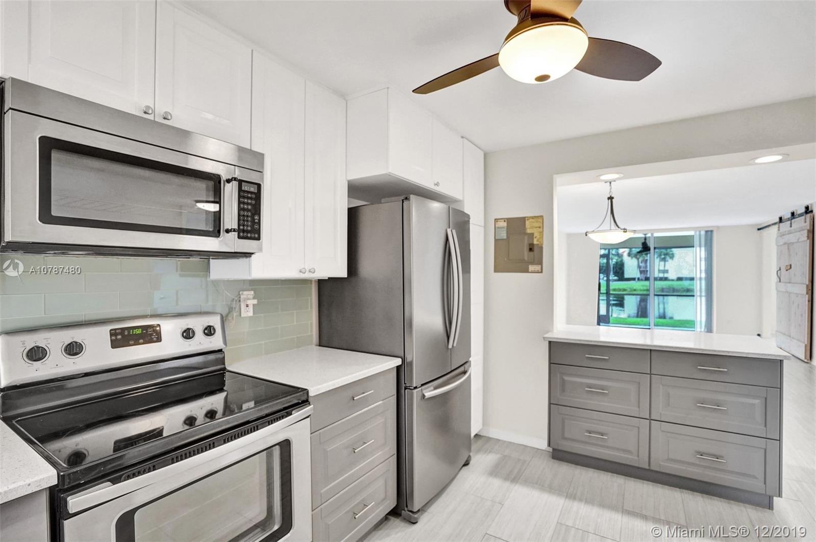 Ground floor 2 bedrooms 2 bathrooms condo comes fitted with the most exquisite materials. Contemporary designed two tone kitchen cabinets with a complementary accent backsplash and granite countertops. And an open kitchen concept that allows you to look into the dining/living room. Top of the line Samsung stainless steel appliances. The present-day look of wood in an extremely durable tile throughout the entire condo. Elegant bathrooms upgraded with stylish tile in the step-in shower located in the master bedroom. Paneled wood primed Alder barn door that easily converts the 2nd bedroom into a family room if need be. Spectacular eastern exposure view from the patio. Which looks onto the manicured golf course. Walking distances from the main clubhouse. Pet-Friendly!! PAID-UP REC LEASE!!!