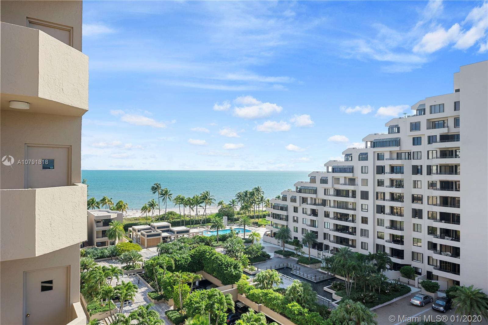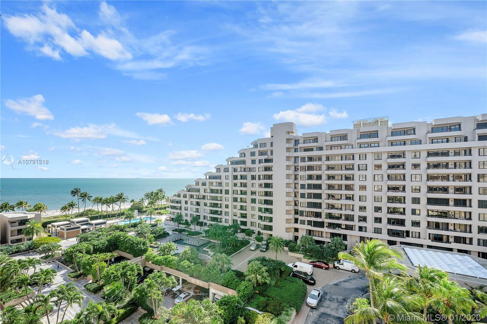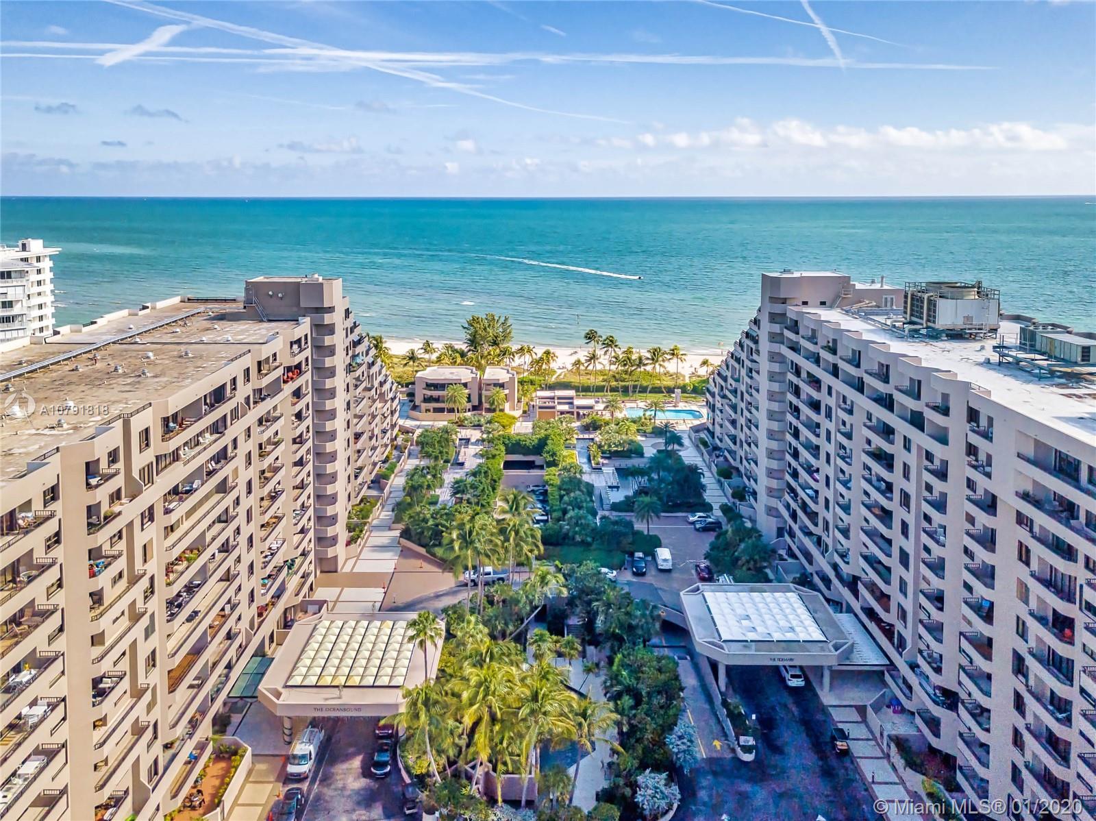 OceanSound Luxury Condo on the beach in Key Biscayne! Exclusive Key Colony II guard gated 24/7. New floors and remodeled unit. Very large, over 2,000 square feet featuring 3 bedrooms/ 3 baths with (1) covered parking space, valet, (additional spaces rent $100/month prox.). Closet organizers, high ceilings. HOA Fee $1,268/month covers building, roof, water, insurance, all amenities, Beach, 6-pools, fiber internet, 12-tennis courts, Oceanside Cafe, gym, playground, security 24/7. Balcony views of Ocean. Accordion Hurricane Shutters, inside unit laundry. Move-in Condition!