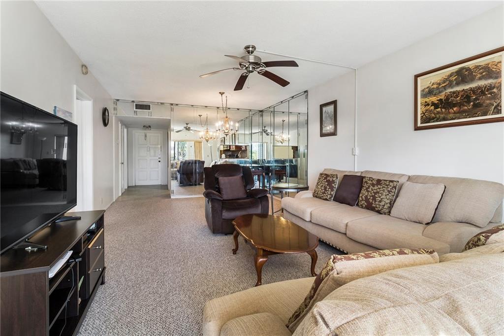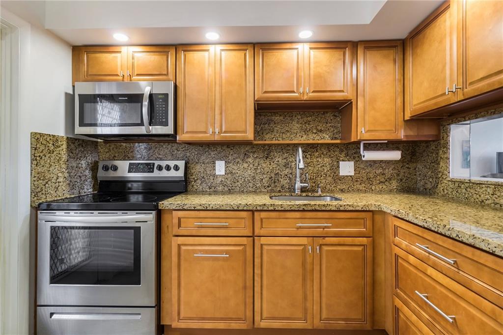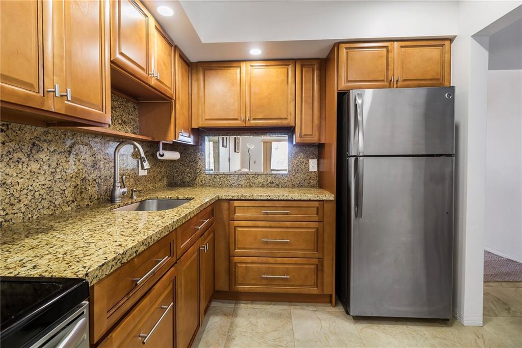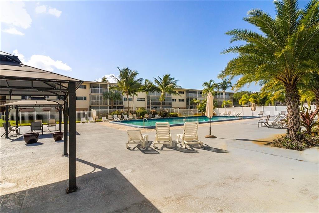 Beautifully renovated kitchen boasts granite counters & backsplash, high-quality cabinets & hardware, stainless steel appliances & tray ceiling. Guest half bath renovated with ceramic tile floors & vanity w/granite . Large bedroom with walk-in closet & wall closet, vanity area & en-suite bathroom. East Golf course view from covered patio & bedroom provides tranquility & serenity. Brand new clubhouse with walking trails, rec room, gorgeous heated pool & gym OR use the pool & gym right around the corner. This community is quiet, safe & centrally located to shopping, restaurants, Hollywood beaches, the Ft Lauderdale Airport, Hard Rock Casino & I-95. Live a low-maintenance lifestyle with pest control, basic cable, building insurance, trash removal, water and sewer included in your HOA dues.