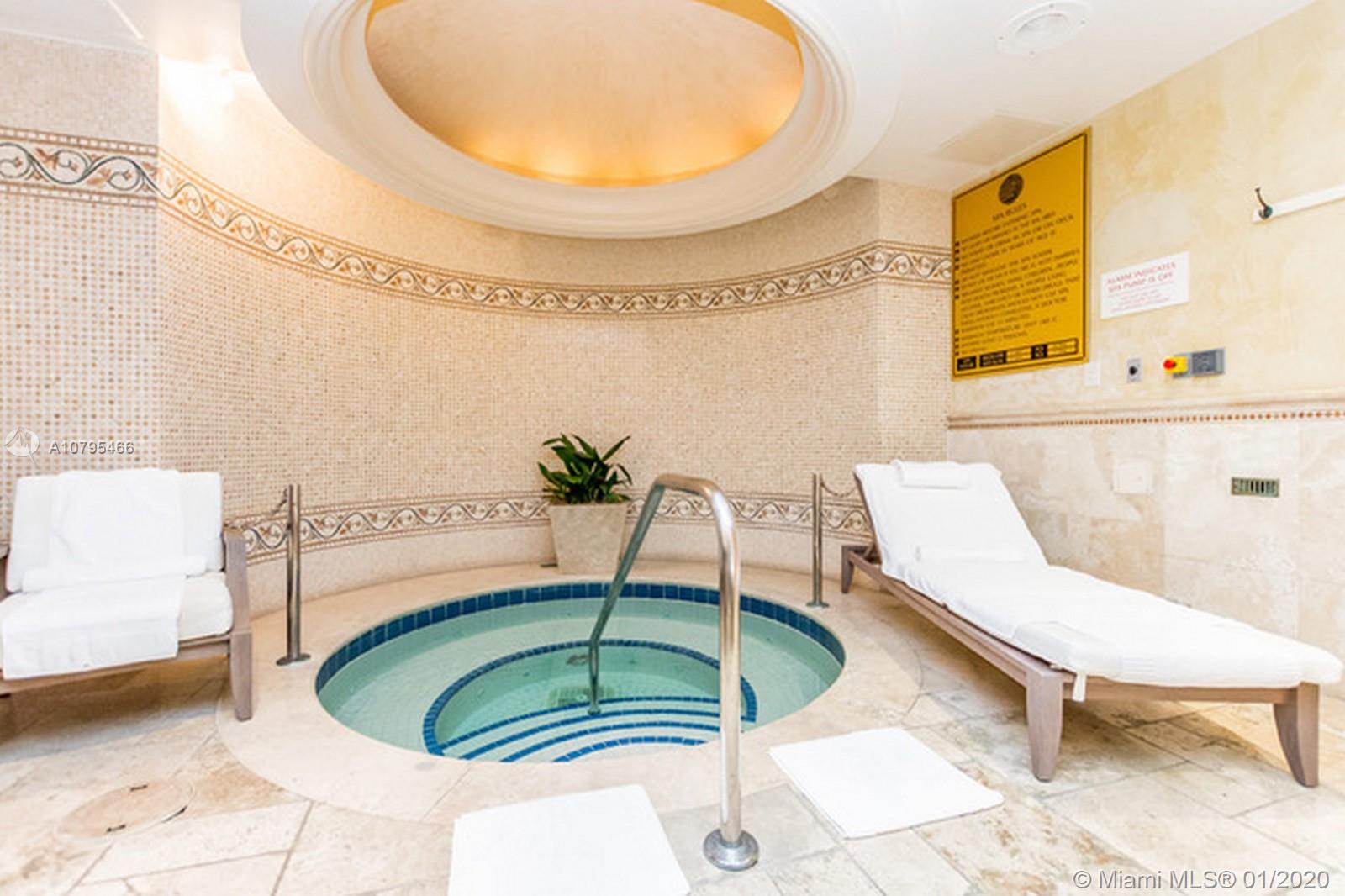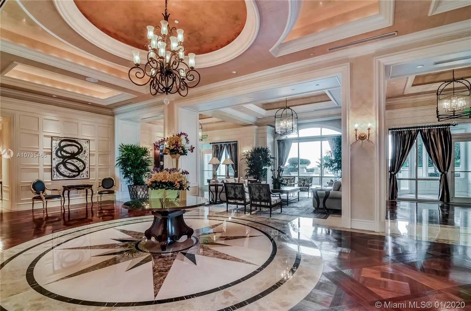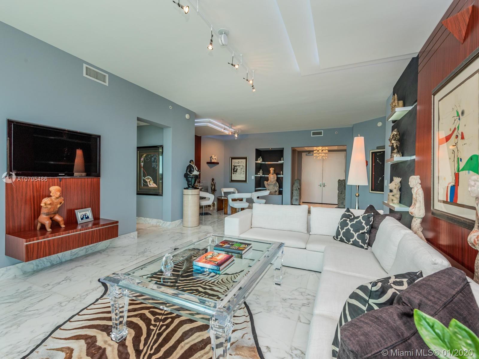 Stunning and Special ! Uniquely designed with fabulous built-ins and custom shelving incredibly lit from the inside! Calcutta Ora marble throughout all living areas- including laundry room and balcony which stretches entire length of unit offering amazing ocean views from every room. Ideal split floor-plan welcomes family or guests! All this in a Premier Beachfront building with private elevator, gourmet dining, spa, and gym. Move-in immediately. Must see to believe.