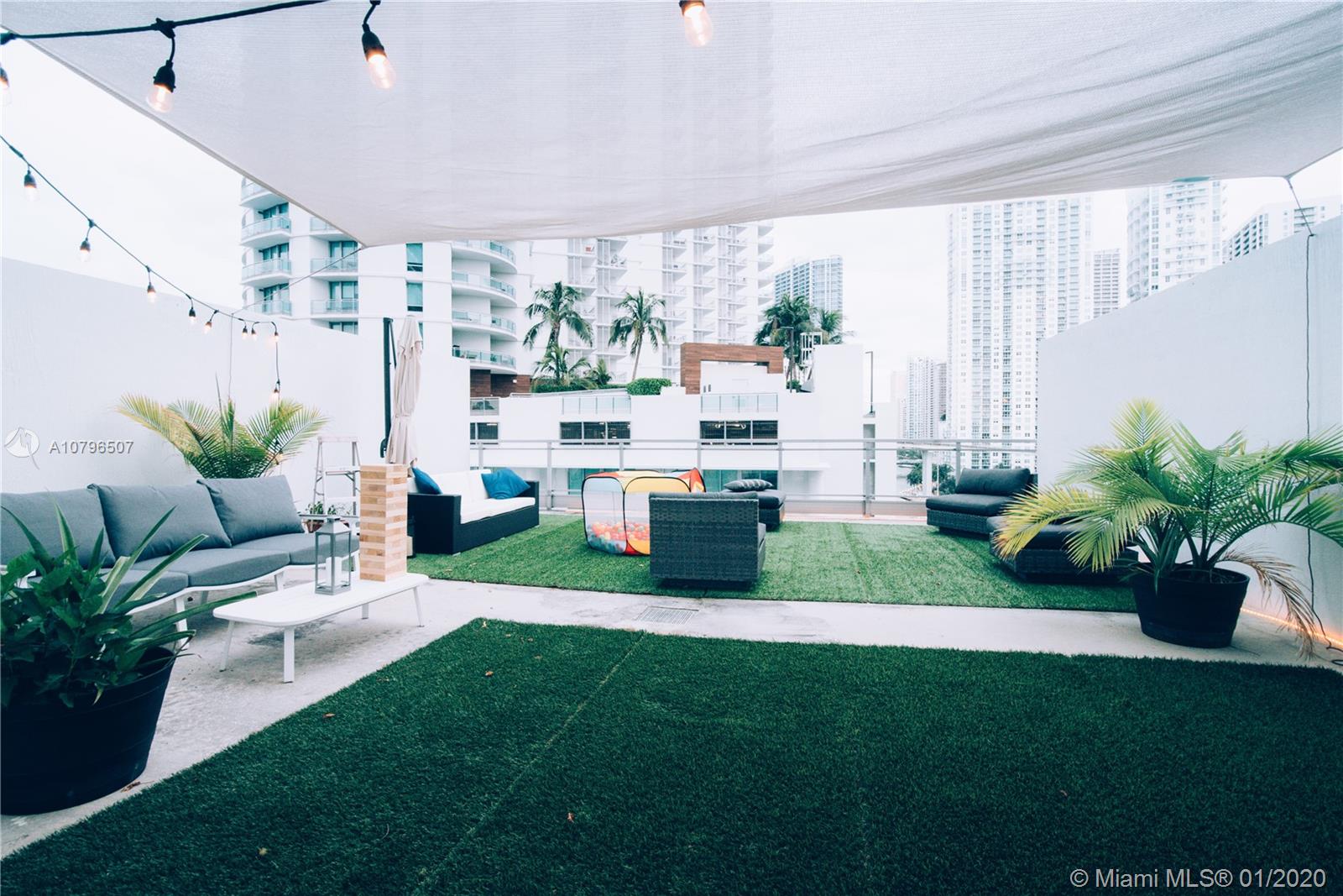 Beautiful, very spacious 3-story Townhome in the Ivy Condo. Double-height ceilings, with floor to ceiling glass walls in the living room area, this 1 bed plus big den /2 Full BA plus add'l office space... featuring a very PRIVATE, unique 892 square foot ROOFTOP TERRACE. This PRIVATE, SPACIOUS ROOFTOP TERRACE is perfect for family events, entertaining guests or just relaxing while you enjoy the amazing views of Brickell, Downtown, and the River. The den has already been converted into a 2nd bedroom with sleek, white glass sliding doors. Large Master Bedroom with Walk-in closet. 1 assigned parking spot conveniently located on the same floor as the unit.