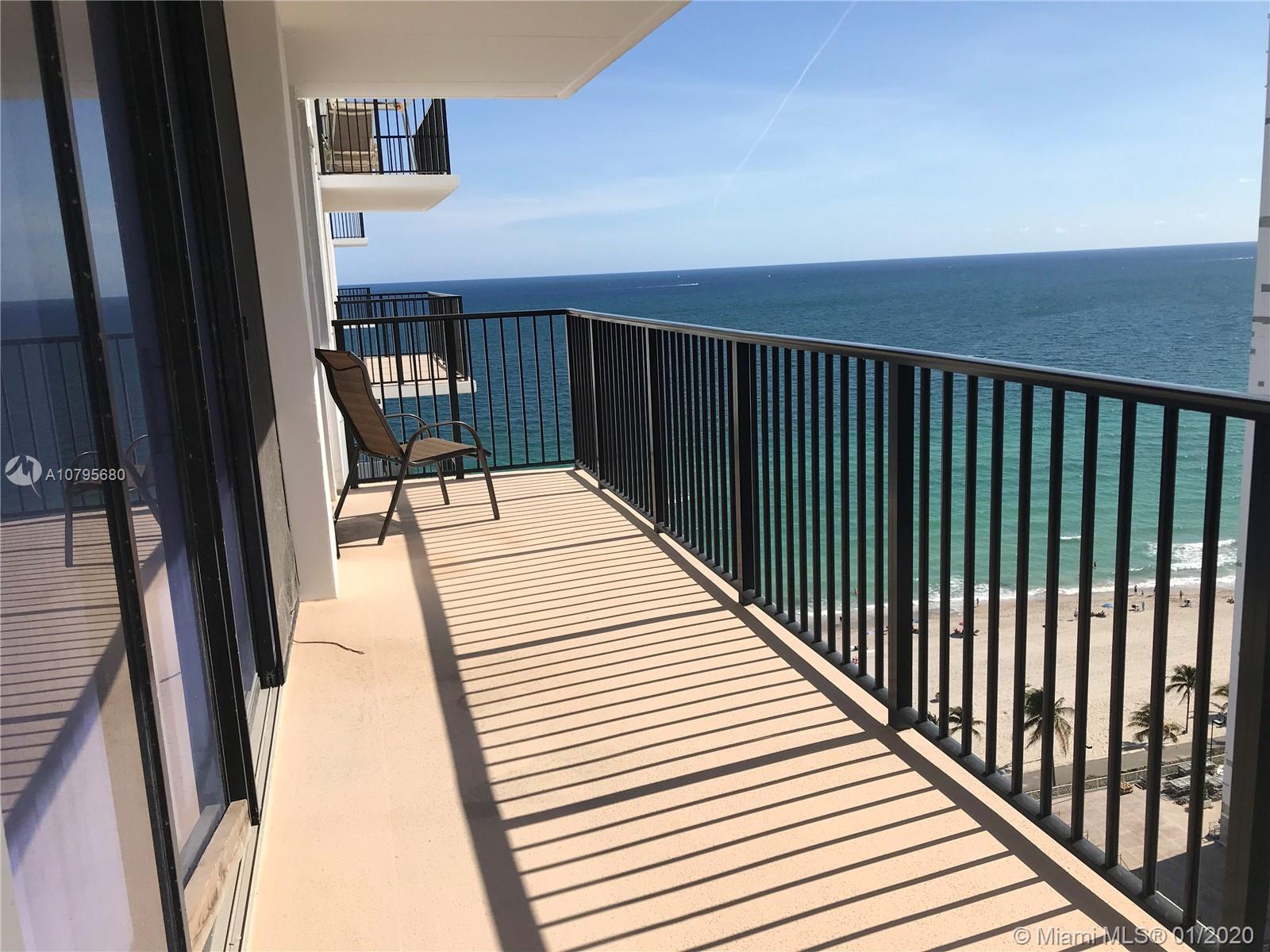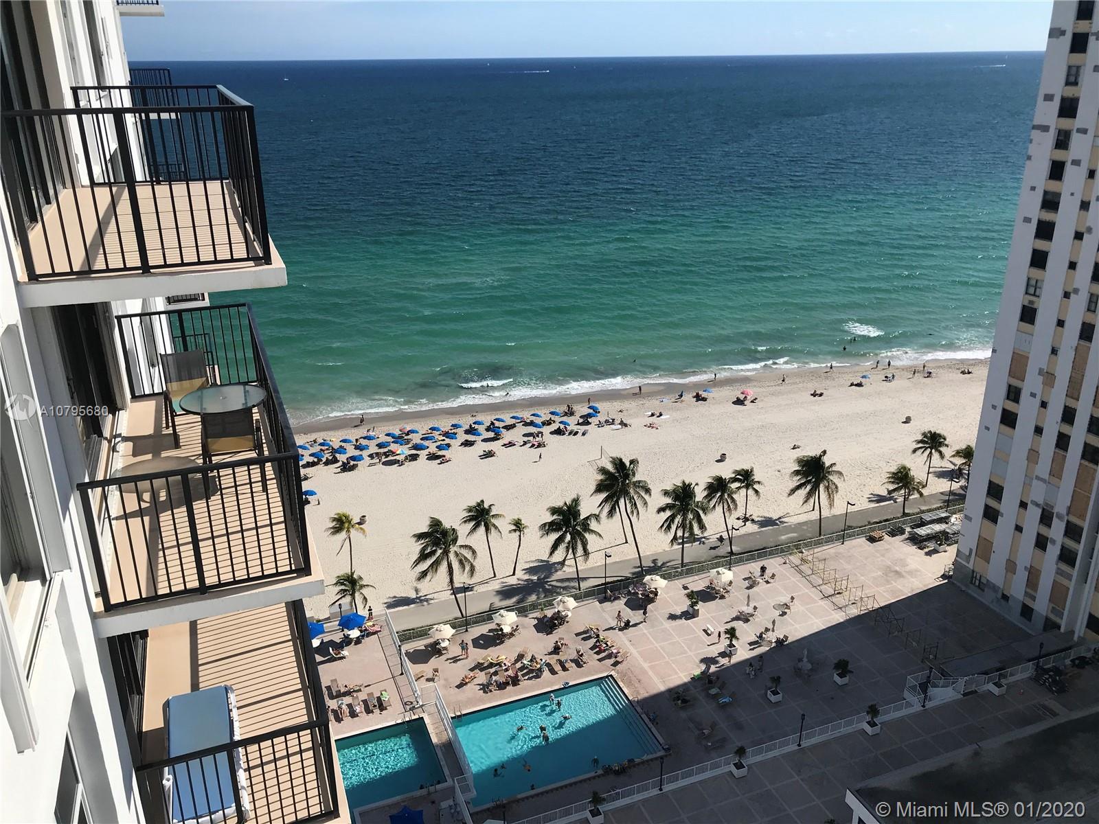 BEST LOCATION, WALK TO DIPLOMAT HOTEL AND THE HOLLYWOOD BROAD WALK WERE THE FUN NEVER SETS. MAKE THIS BRIGHT AND COMFORTABLE 2/2 YOUR HOME, AMAZING OCEAN AND INTRACOSTAL VIEWS , LARGE BALCONY, IMPACT WINDOWS AND SLIDING DOORS, BRAND NEW 2ND BATHROOM. FULL SERVICE COMPLEX WITH 2 HEATED POOLS, BUSINESS CENTER, RESTAURANT, MINI MARKET, BILLIARD, FITNESS CENTER, 24-HOUR SECURITY, VALET PARKING, BEACH CHAIR SERVICE, SAUNA, STEAMROOM, ACCESS TO THE BEACH. 40 YRS INSPECTION IS DONE.