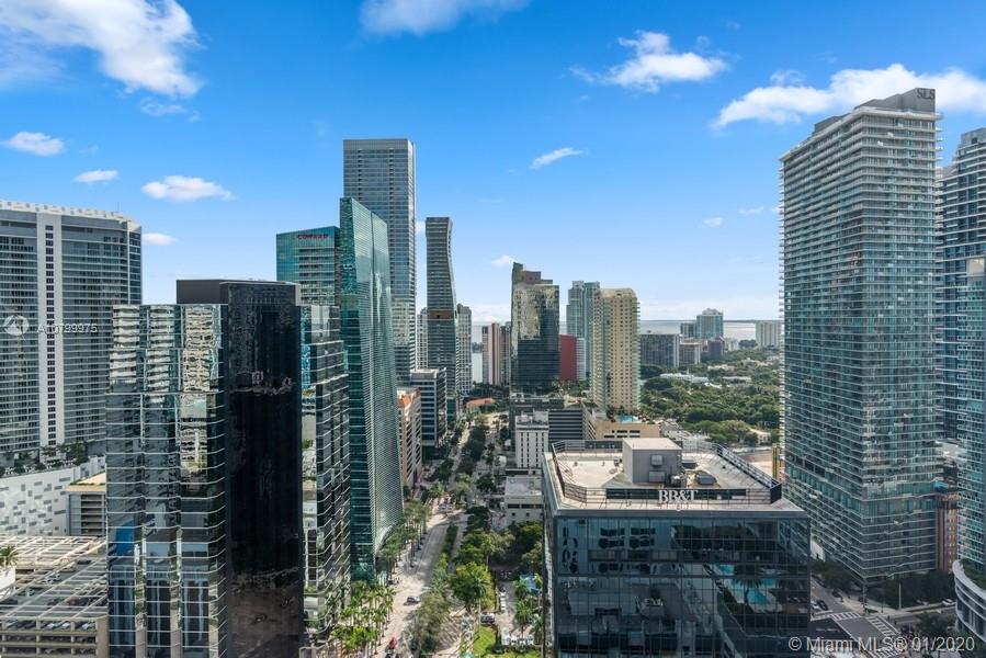 Urban Living at its best! Immaculate 2 bed/2 bath South East corner unit: its location, floor height, 2 standing balconies & floor to ceiling windows allow for marvelous natural light & expansive views of Biscayne Bay from the Port of Miami to the NE mostly enjoyed from the living room, all the way to Coconut Grove to the SE giving the master room an amazing combination of city and water views. Porcelain floors, Open kitchen w/granite counters, Italian cabinetry, stainless steel appliances. Ample closet space w/enlarged closet in master bedroom. Amenities include pool, fitness center, billiard, cigar, massage, yoga & party rooms, virtual golf, business center. This financially very solid building has an unbeatable Brickell location, with the easiest access both for vehicles & pedestrians