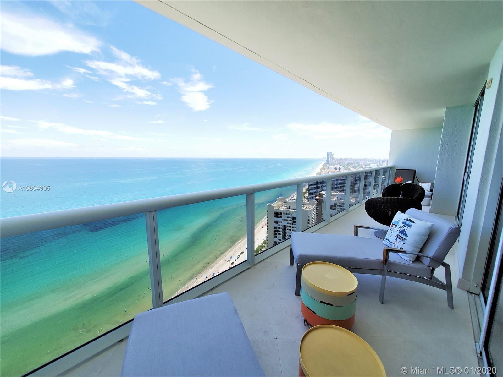 Million dollar view from this oceanfront condo. Bright and spacious 3 bedrooms and each with a full bathroom. Marble floors throughout, Italian kitchen cabinetry with granite and Stainless Steel counter tops. Modern and tasteful furniture + decoration negotiable. Floor to ceiling hurricane proof sliding doors with access to balcony from each room. 5 Star resort style amenities, magnificent 2 story lobby entrance, full time concierge, 24 hr valet parking & security, covered parking, 5 heated pools, jacuzzi, 50.000 sq.ft spa and fitness center overlooking the ocean, Pool side restaurant and Bar, beach service and more! 1 assigned space + 1 FREE valet SPACE. Minutes to shopping and restaurants, Gulfstream Race Track/Casino, Aventura Mall, I-95 and Ft. Lauderdale Airport. Priced to sell!