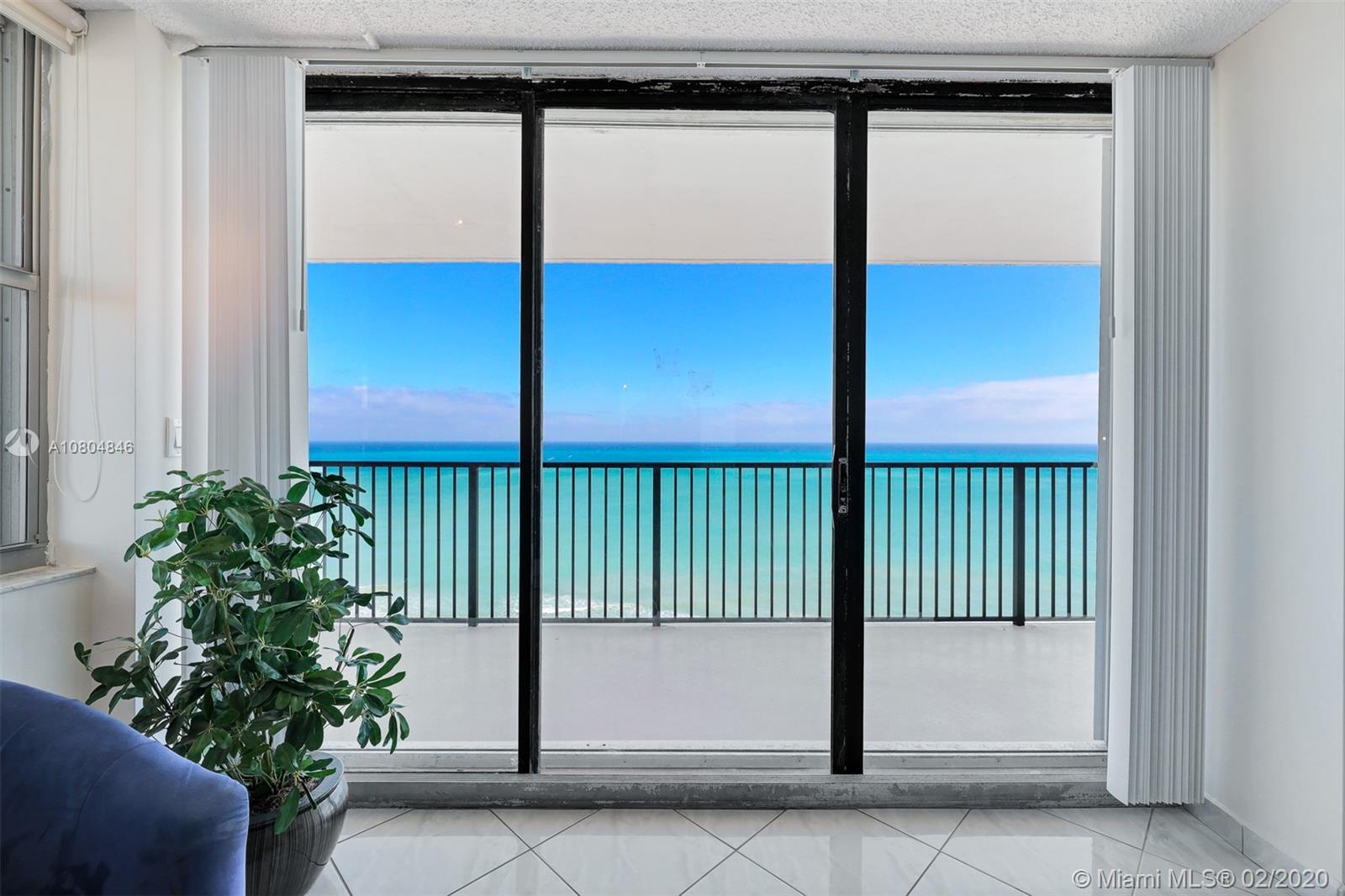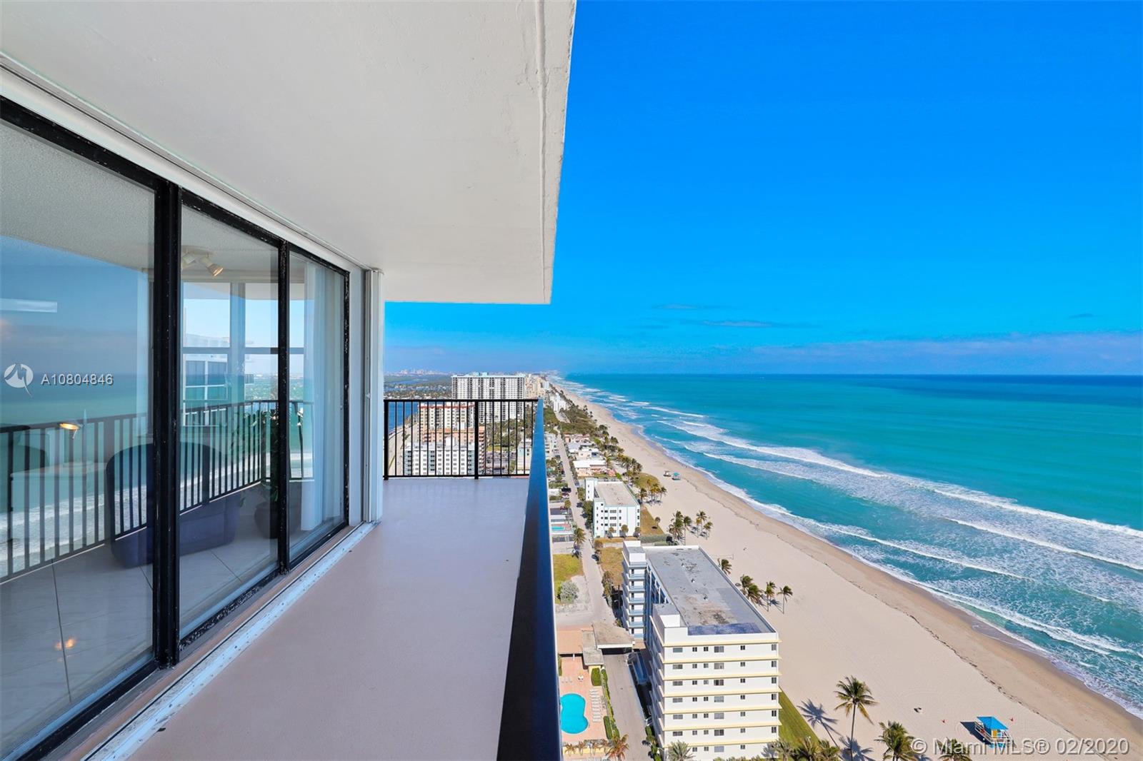 The best views in Hollywood Beach! Penthouse corner unit with wraparound terrace that boasts unobstructed direct Ocean and City views! Open concept kitchen with all white cabinets, granite countertops, recessed lighting and matching white appliances. Access to balcony from living room and master bedroom! Tile floor throughout and huge walk-in closet. Within walking distance of the beautiful “Blue Wave Award” winning Hollywood Beach and Broadwalk. Located only a few miles and minutes from Miami Beach and Fort Lauderdale. Resort-style beachfront property situated on 5.17 acres include 2 swimming pools, a restaurant, two gyms, social hall, billiards room, library, business center, beauty salon and valet. Minutes drive from Fort Lauderdale Airport and renowned Aventura shopping mall.