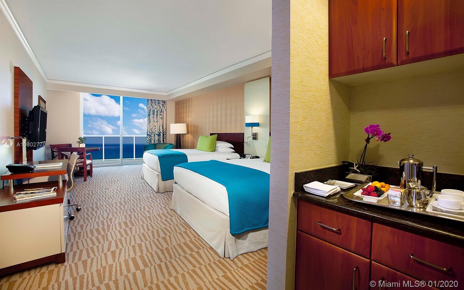 Ocean Front Studio, Spectacular views. Good rental income. 2 queens, dining table, kitchenette, fully furnished by hotel standards. Great amenities: 2 pools, 4 restaurants, tennis court, kids daily entertainment, remodeled gym and spa, and more. Bring your offers,