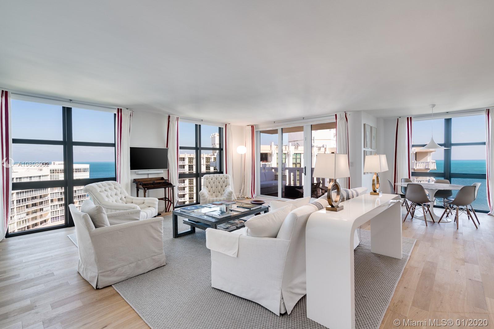Panoramic ocean, state park and bay views from this beautifully and impeccably renovated Penthouse unit. Open gourmet kitchen with top of the line appliances including viking stove/oven. Natural wood floors, custom wood cabinetry and exquisite marble baths with marble in-lays. New floor to ceiling impact windows throughout. All must be seen to be appreciated! 2 Covered Parking Spaces. Easy to show.