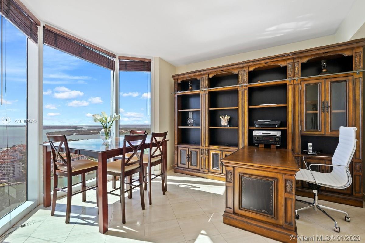 Spectacular flow-through 2 bed + den just below the penthouse at the prestigious Portofino Tower, boasting breathtaking unobstructed views of the Atlantic Ocean, South Beach, Biscayne Bay and Miami Skyline from 2 private oversized balconies w/ access from every room. Private elevator foyer. Over 2,000SqFt of interior space, with separate living and dining room, den/office, large kitchen and multiple walk-in closets. Oversized master bedroom & bath. Portofino Tower is a luxury community with a world class fitness center/spa on the 29th floor, 2 pools with towel service, lounges & cabanas, 2 tennis courts, 24hr valet, security, and concierge services. Steps to the beach, restaurants and all night life South of Fifth. A truly incredible and rare offering.