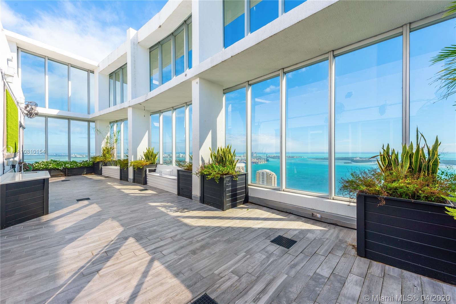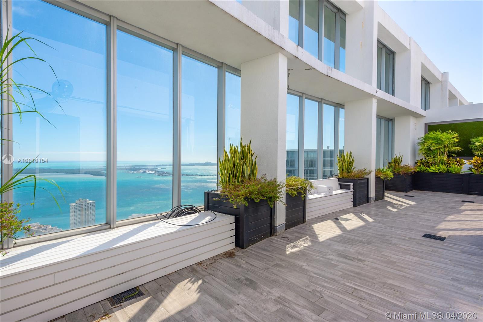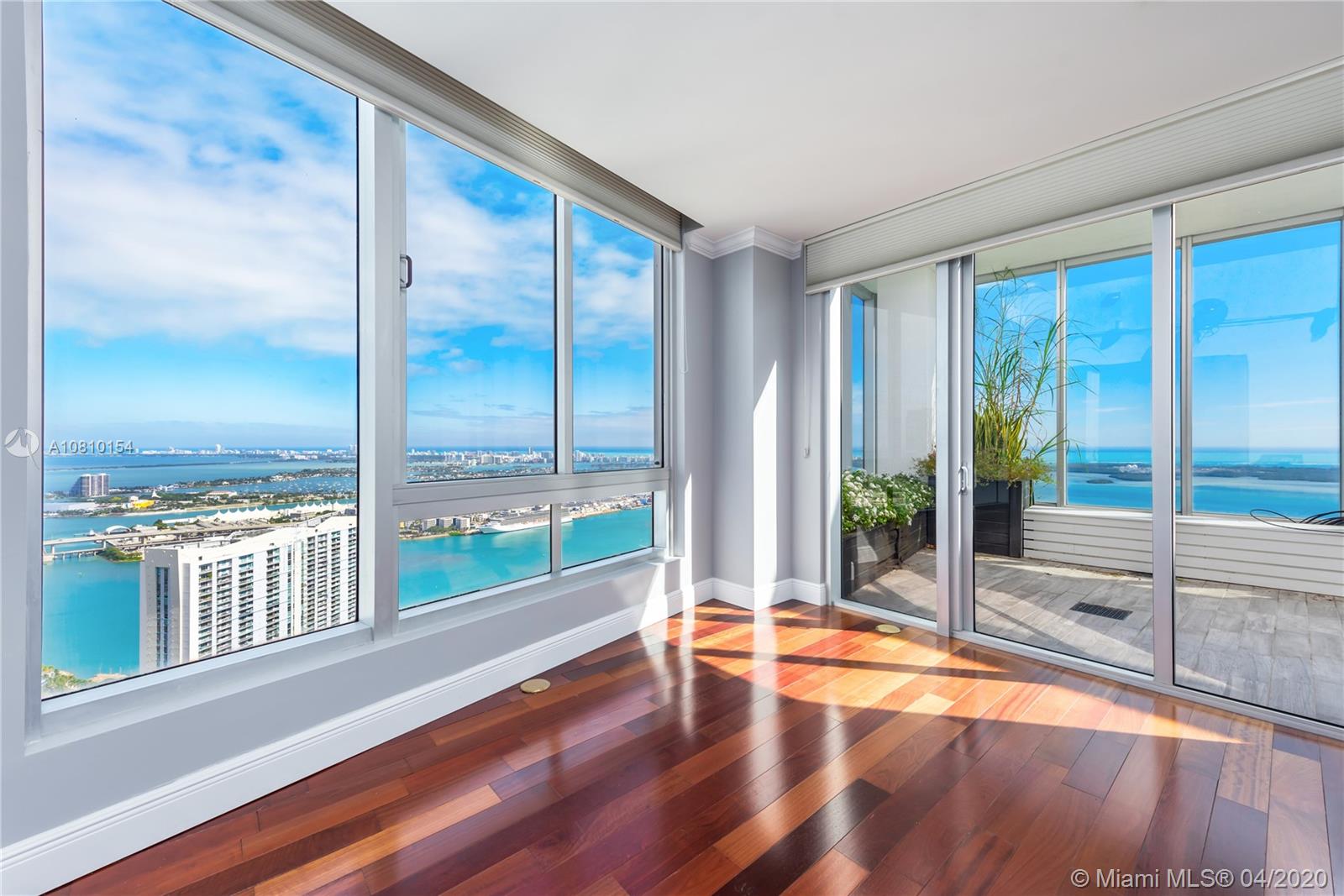 Perched atop Icon Brickell, rarely available two-level corner penthouse on the 57th floor. Spectacular views over Miami Beach, Fisher Island, Key Biscayne and the Port of Miami. 2,538 sq ft oceanfront penthouse with indoor and outdoor living space sprawls over two stories, with oversized terraces and sweeping panoramic Biscayne Bay and city views. Penthouse 5701 offers three-bedrooms, three-baths and powder room, kitchen with Italian cabinetry, master suite with walk-in closets, en-suite bathroom with spa bath. Second floor features family room and an oversized terrace with wet bar - perfect for entertaining. Philippe Starck designed Icon Brickell offers world-class amenities including three pools, full-service spa, fitness center, 24-hour concierge and on-site fine dining restaurants.