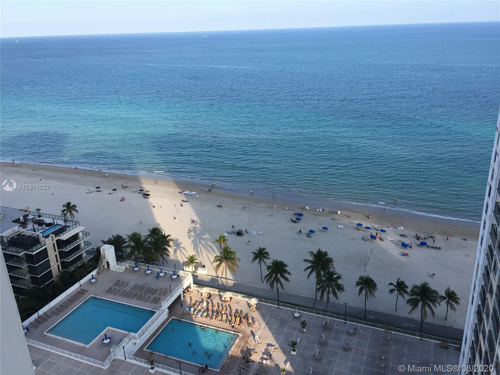 The Best location and Views in Hollywood Beach! Corner unit with unobstructed direct Ocean and City views! Open concept kitchen with state of the art appliances, granite counter-tops, recessed lighting . Access to balcony from living room and master bedroom! All doors and windows Hurricane proof. Tile floor throughout and huge walk-in closet. Within walking distance of the beautiful “Blue Wave Award” winning Hollywood Beach and Boardwalk. Located only a few miles and minutes from Miami Beach and Fort Lauderdale. Resort-style beachfront property situated on 5.17 acres include 2 swimming pools, a restaurant, two gyms, social hall, billiards room, library, business center, beauty salon and valet. Water Aerobics, Zumba and Yoga classes free. Minutes drive from Fort Lauderdale Airport.