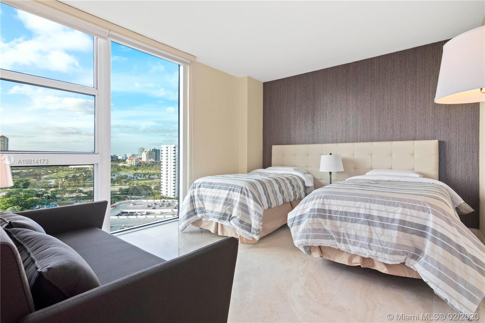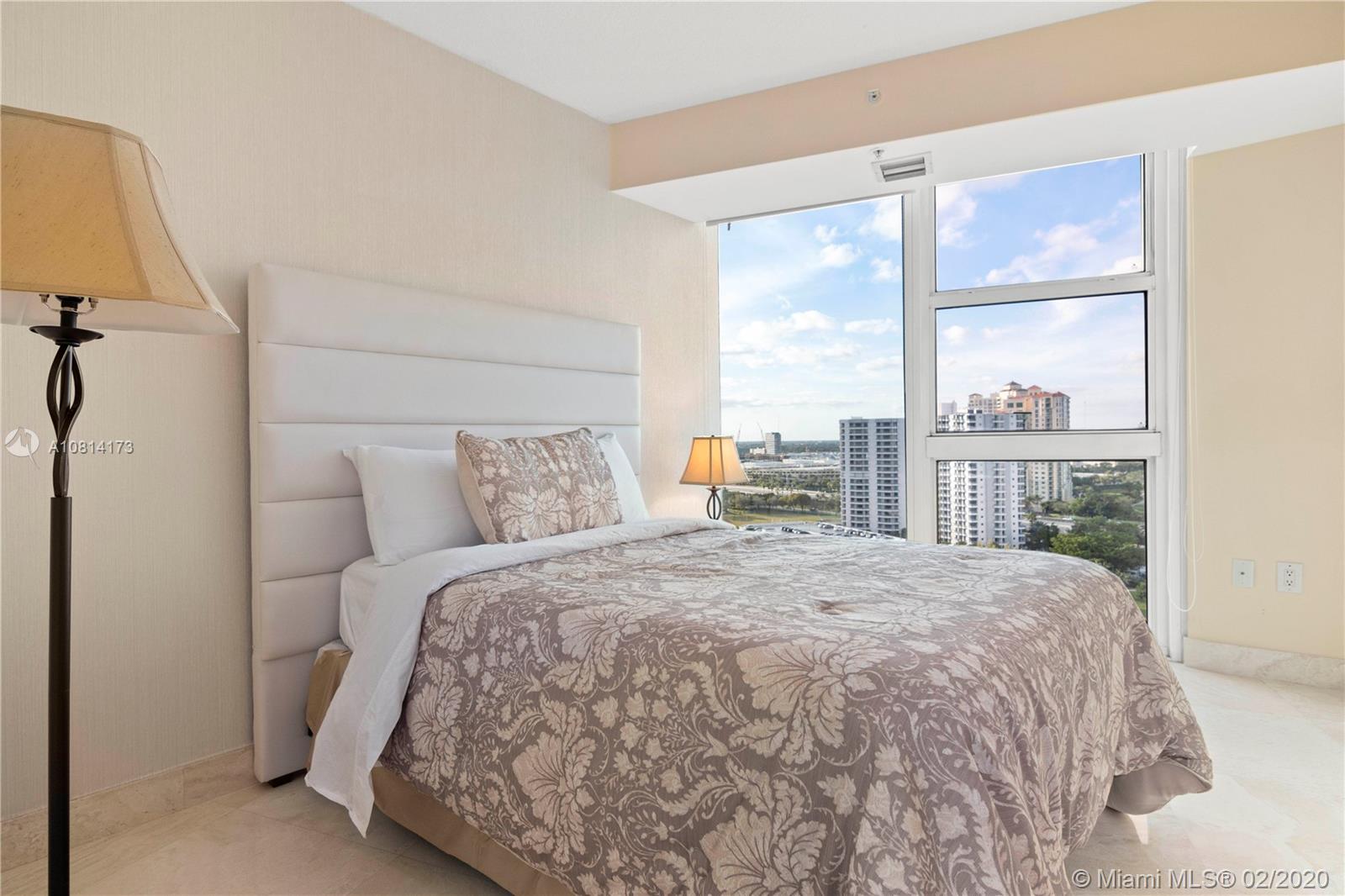 BEST PRICED 3 Bedroom unit in high floor, in the building! Beautiful 3/2/1 + DEN in mint condition. Flow through floor plan with bay and city views, offered Turn-Key with high-end furniture included. Gourmet kitchen with built-in oven and breakfast countertop. Formal dining, DEN and living room. Powder room and laundry. Master bedroom with walk in closet. Master bathroom with 2 sinks and shower separated from the tub. Hurricane windows and hurricane sliding doors. Semi private elevators. 1 assigned parking spot. Building offers: Valet Parking, Fitness center, Social & Card Room, Kids Room, Library, pool and jacuzzi, tennis and squash fields. Boatdock and Marina with services.