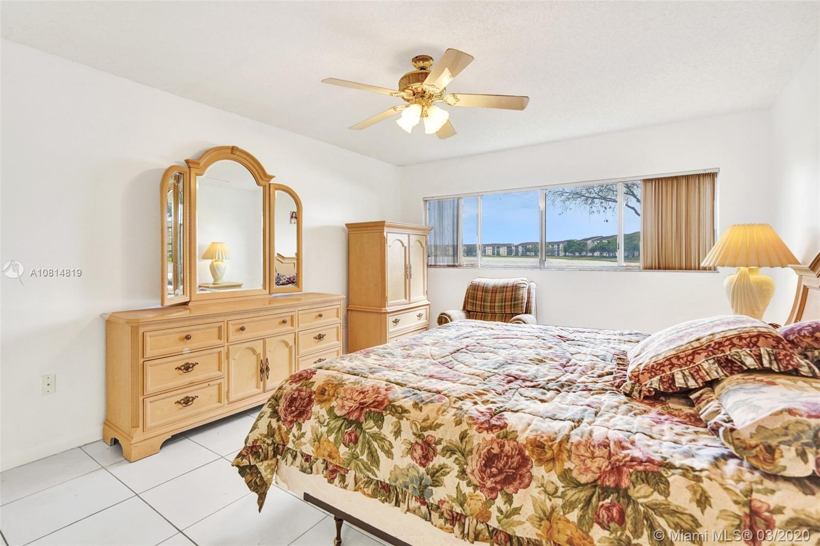 Amazing Deep Lake Views from this Fabulous 2 Bed/ 2 Bath Karanda model in the new section of Century Village. One of the most desired models in the best location with a huge kitchen, breakfast nook, and tile floors throughout. Featuring 2 very large bedrooms both with walk-in closet and ceiling fans in all the rooms. A metal screened security door provides additional protection and allows you to leave the front door open and enjoy a cross breeze. Furniture is Available. Century Village is a 55+ community with endless resort-style amenities. It has a million-dollar clubhouse, transportation, 2 fitness centers, 24-hour security, 8 swimming pools, tennis court, movie theater, billiards, pharmacy, cafe, golf and so much more!
