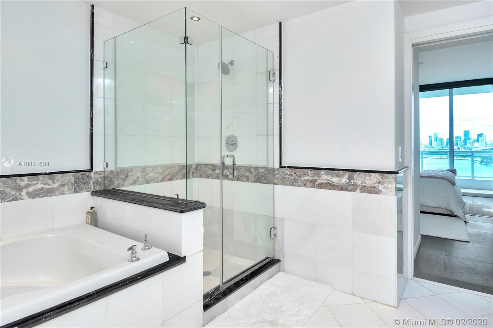 Stunning bay front 1 bed, 1 bath unit at The Bentley Bay North features 779 sq. ft. of unobstructed bay and city skyline views. Elegantly designed interiors include marble countertops, expansive floor to ceiling windows, imported European cabinetry, stain less steel appliances and large private terrace facing the water. Sound insulted master suite boasts walk in closets and a separate soaking tub and seamless glass shower. Located within very close distance of SoBe's top shopping and dining destinations.
