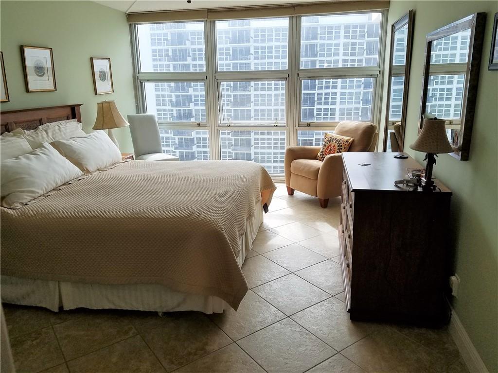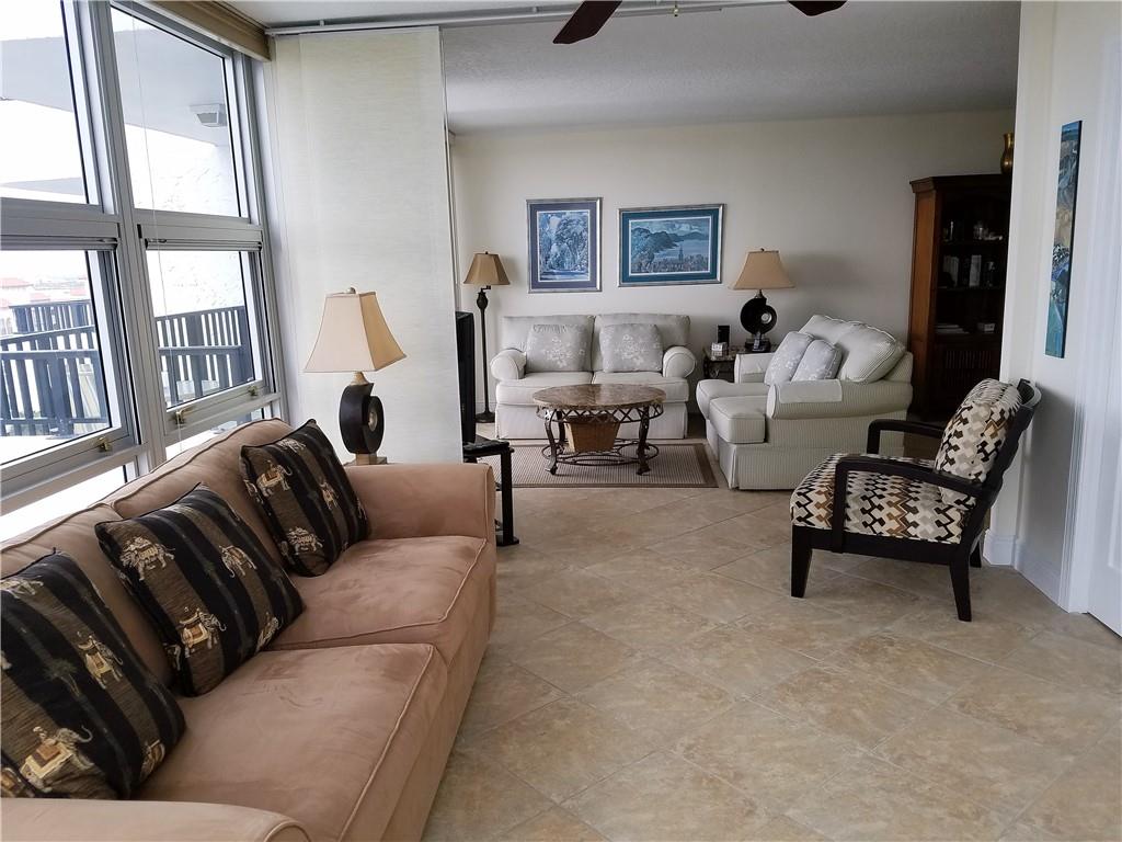 This two bedroom, two bath unit is Totally modern & gorgeous, with amazing views of ocean & Intracoastal/city from two private balconies, one facing SE & the other facing West. Watch the sunrise & sunset from this beautiful unit. Remodeled kitchen with new refrigerator, granite counter tops, stainless steel appliances. Brand new water heater. Completely & beautifully tiled throughout. Second bedroom is set up as a den with work area, desk and sleeper sofa with walk in closet. Large Master bedroom has king size bed & large walk in closet. Garage parking. Building amenities include two pools, tennis court, exercise rooms, sauna, game room, 24/7 security desk... all just steps away from amazing wide white sand beach. Walk to newly renovated pier, beachfront restaurants & shopping.