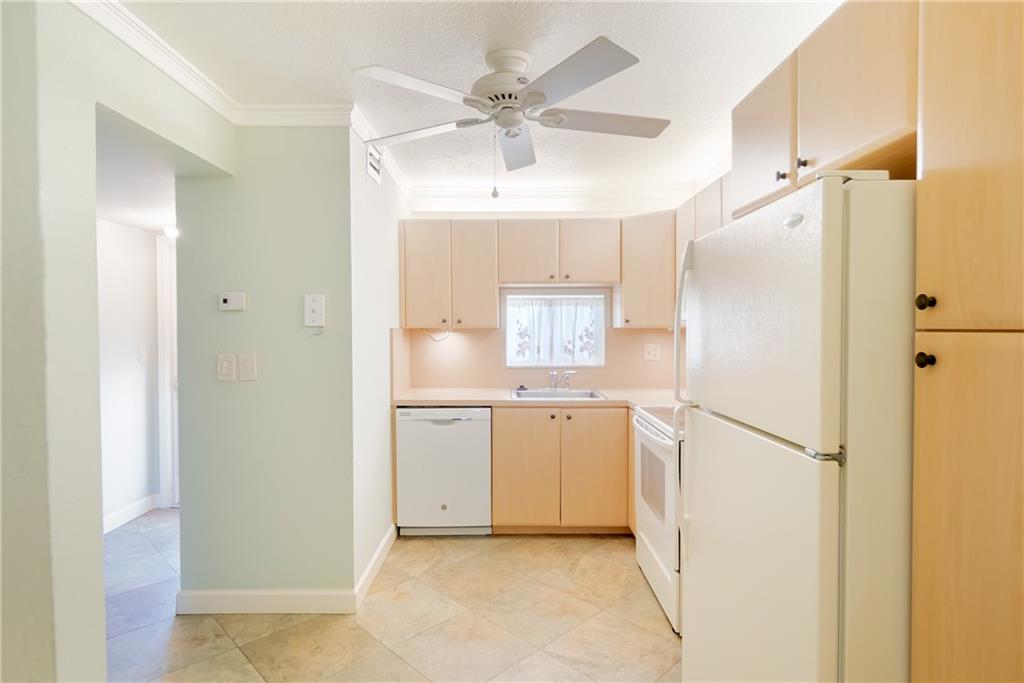 PHASE 1 - PHENOMENAL AND RELAXING 18th Fairway - PGA GOLF Course and lake view! THIRD FLOOR- 2BR/2 BA. Redone KITCHEN with high ceiling; Bathrooms feature granite-topped vanities. Rich cultured large tiles throughout (except 2nd bedroom). 24 hr guard gated. Recreation Lease PAID UP IN FULL! FREE golf (except cart fees) on two 18 hole courses (PGA & Par3); Amenities include Restaurant, Billiard Room, Bbq/Picnic Area, Clubhouse, Courtesy Bus, Exercise Room, Heated Pool, Library, Putting Green, Sauna, Shuffleboard, Tennis, Pickle Ball, Vehicle Wash Area, Electric Car Charging Station. NO MEMBERSHIP EQUITY! Close to shopping, dining & highways. 15 min. to the beach. Association says 55+ age required; MOVE RIGHT IN!