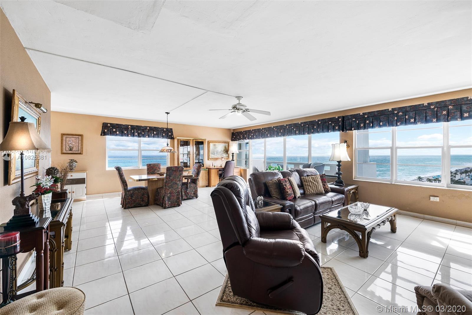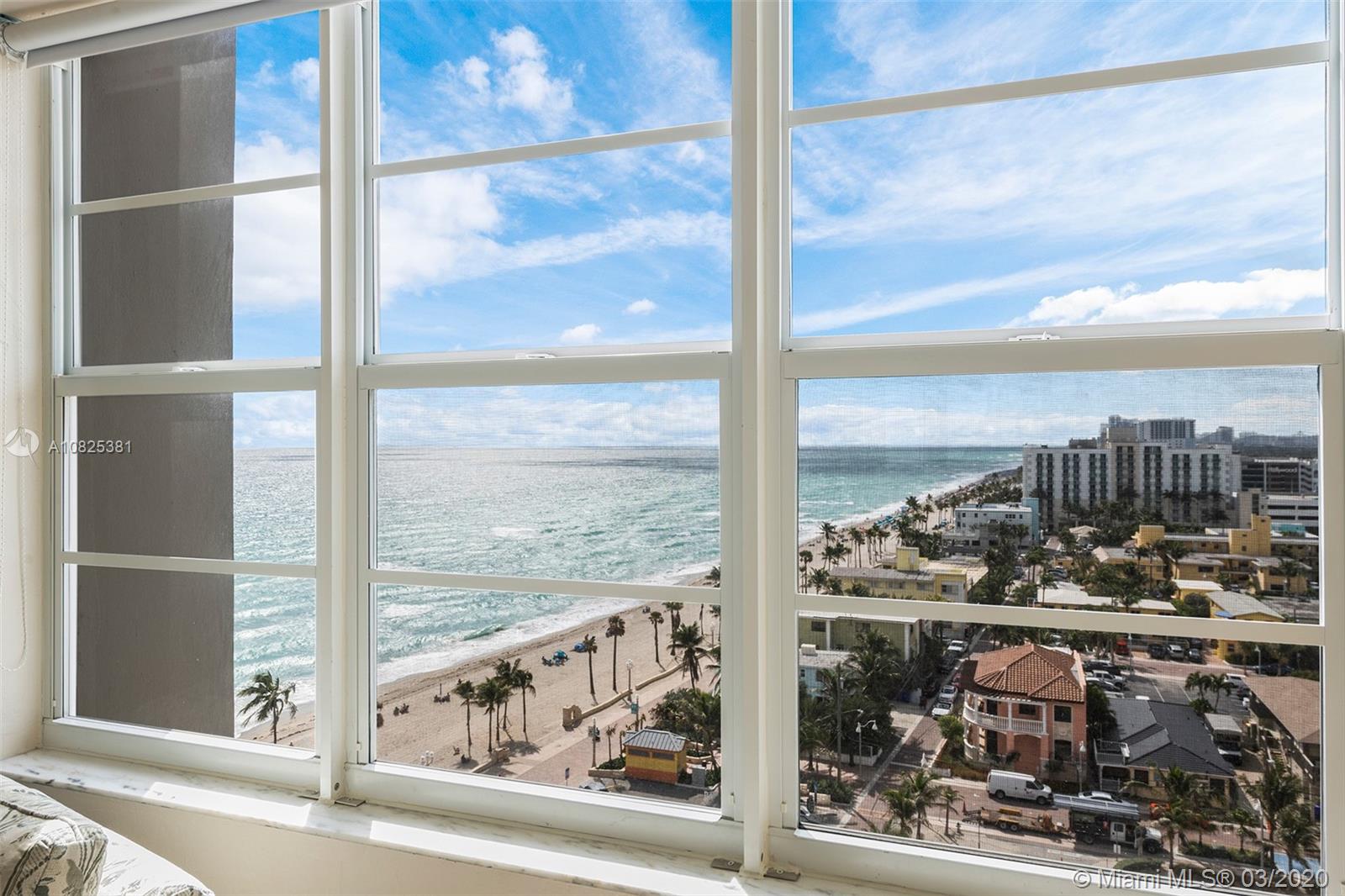 RARELY AVAILABLE 3 BEDROOM, 2 1/2 BATH, SOUTHEAST CORNER UNIT WITH DIRECT OCEAN VIEWS. TRUE OCEANFRONT UNIT WITH BREATHTAKING VIEWS FROM EVERY ROOM! LARGE MASTER BEDROOM! IMPACT WINDOWS! THIS UNIT IS AWAITING YOUR PERSONAL TOUCH! BUILDING FEATURES HEATED-OCEANFRONT POOL/FITNESS EQUIPMENT/BILLIARD ROOM/RESTAURANT/CONVENIENT STORE! LOCATED ON THE BEAUTIFUL HOLLYWOOD BEACH/BROADWALK AND CONVENIENTLY LOCATED WITHIN WALKING DISTANCE TO MARGARITAVILLE, RESTAURANTS AND SHOPS. ENJOY A MILLION-DOLLAR VIEW AND LOCATION FOR MUCH LESS!