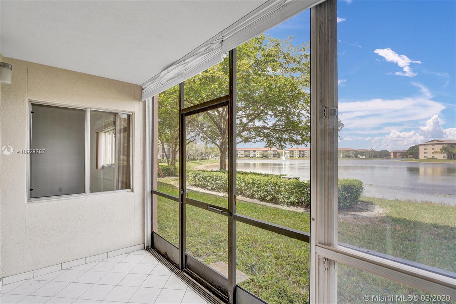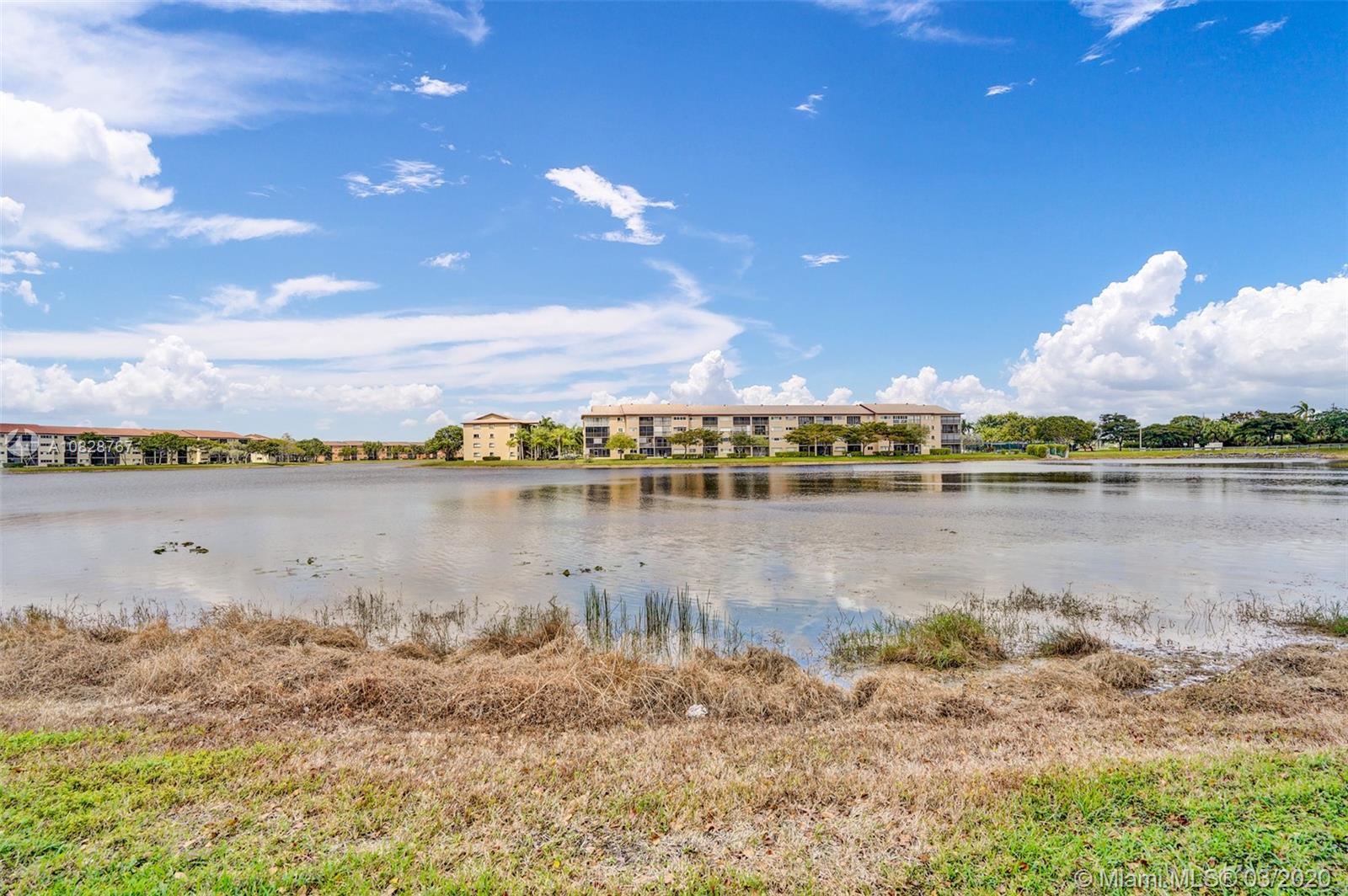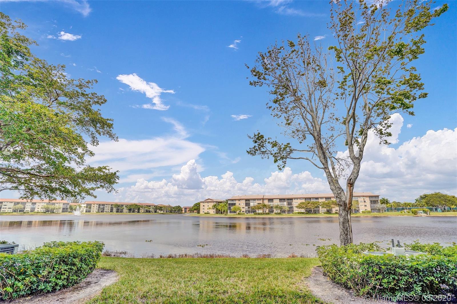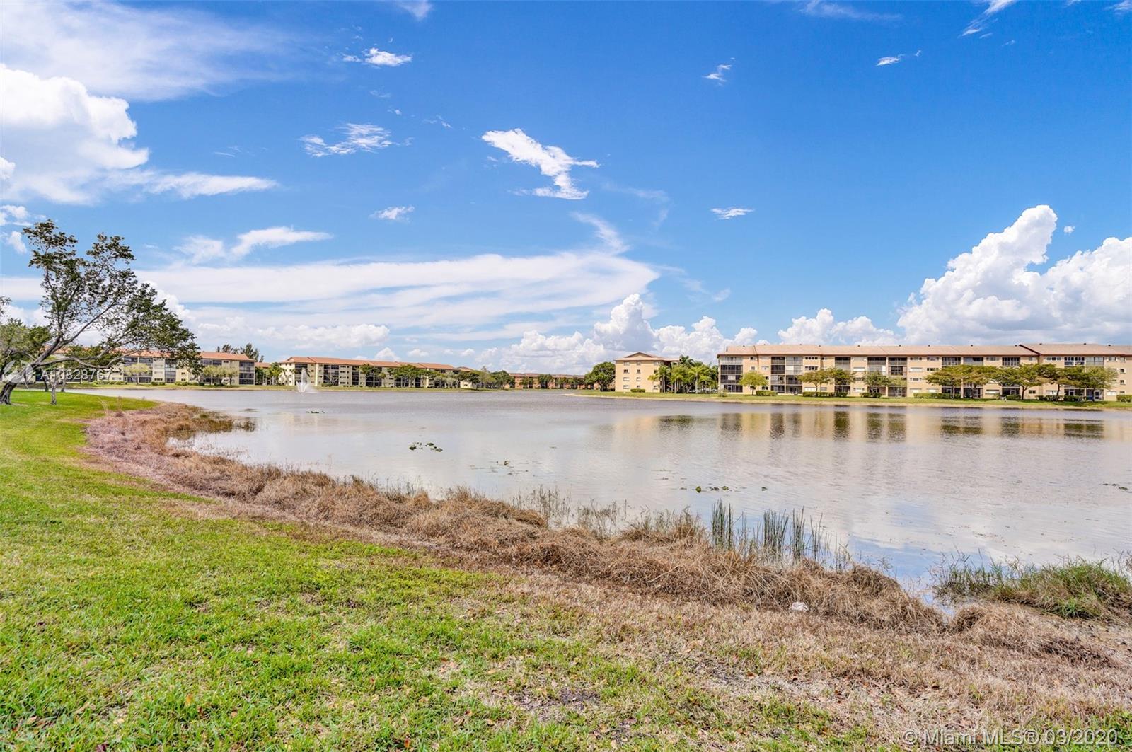 Beautiful 2 BED /2 BATH Primrose model with amazing lake views from the living room and master bedroom. Tastefully updated 1st-floor apartment with galley kitchen and LG breakfast nook in the newest section of the community. The kitchen features custom wood cabinets with granite counters and granite backsplash, stainless steel appliances, and a built-in microwave. High quality LED lighting in the kitchen and bathrooms. Ceramic tile floors throughout, ceiling fans and walk-in closets in both bedrooms. Washer/ Dryer conveniently located in your apartment. Best location in the community! Close to the front entrance, walk to places of worship, the pool, tennis courts, and health club. Century Village is a 55+ community with endless resort-style amenities.