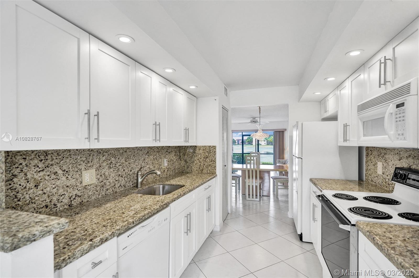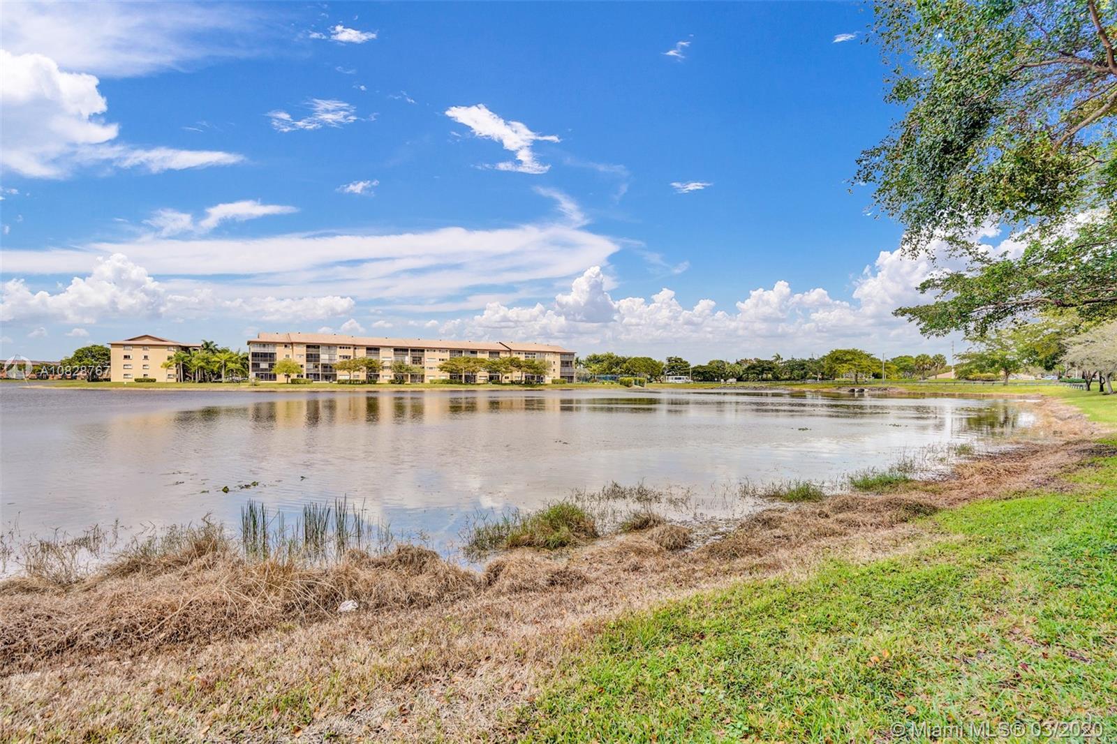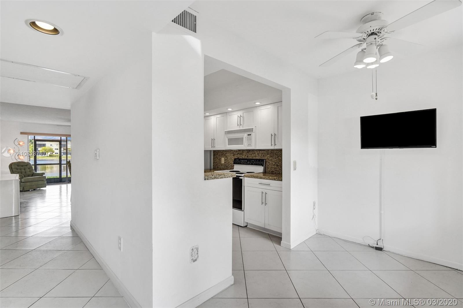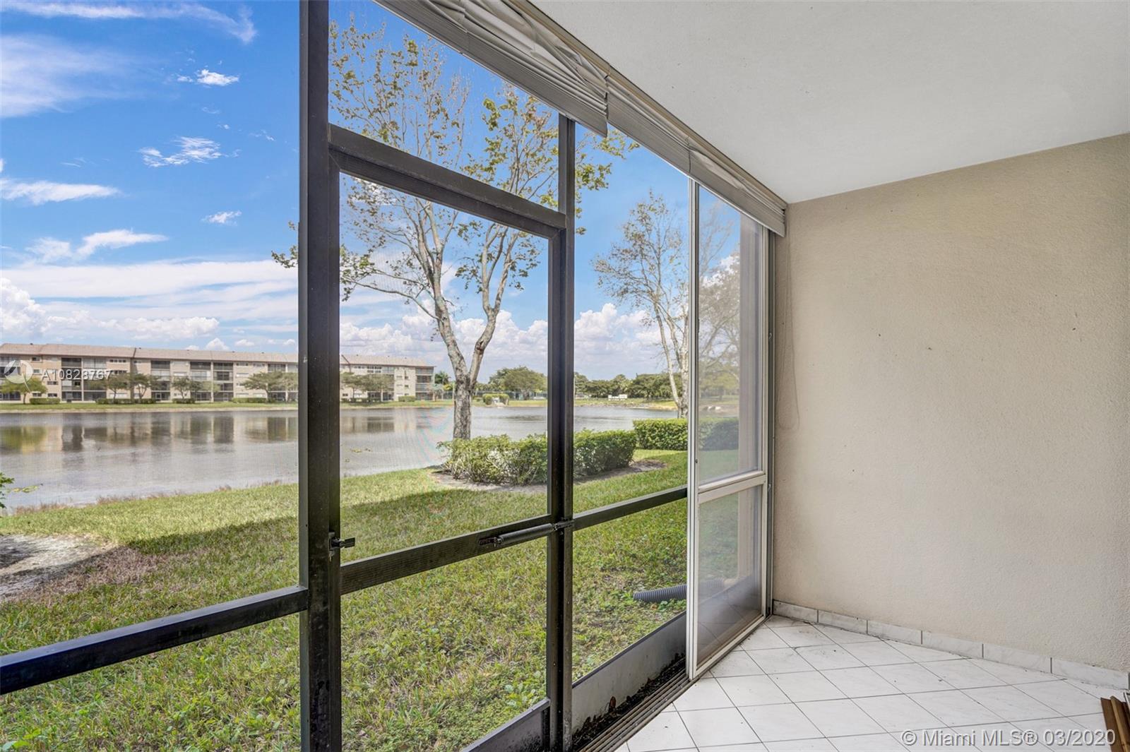 Beautiful 2 BED /2 BATH Primrose model with amazing lake views from the living room and master bedroom. Tastefully updated 1st-floor apartment with galley kitchen and LG breakfast nook in the newest section of the community. The kitchen features custom wood cabinets with granite counters and granite backsplash, stainless steel appliances, and a built-in microwave. High quality LED lighting in the kitchen and bathrooms. Ceramic tile floors throughout, ceiling fans and walk-in closets in both bedrooms. Washer/ Dryer conveniently located in your apartment. Best location in the community! Close to the front entrance, walk to places of worship, the pool, tennis courts, and health club. Century Village is a 55+ community with endless resort-style amenities.