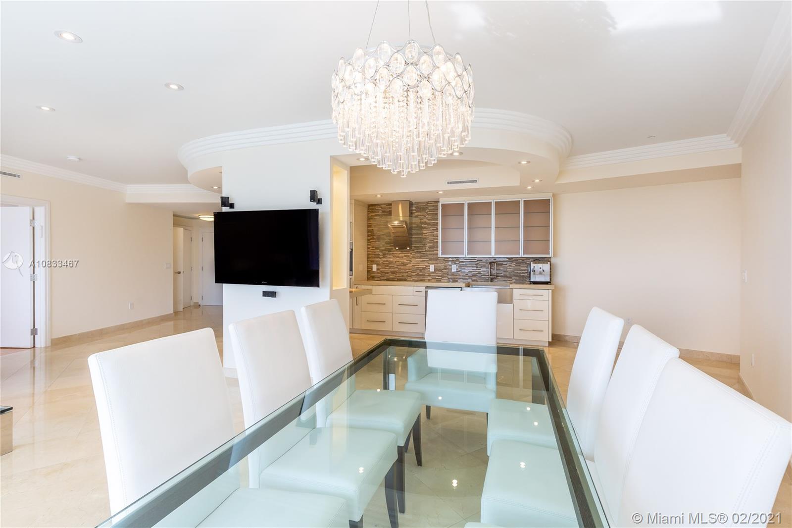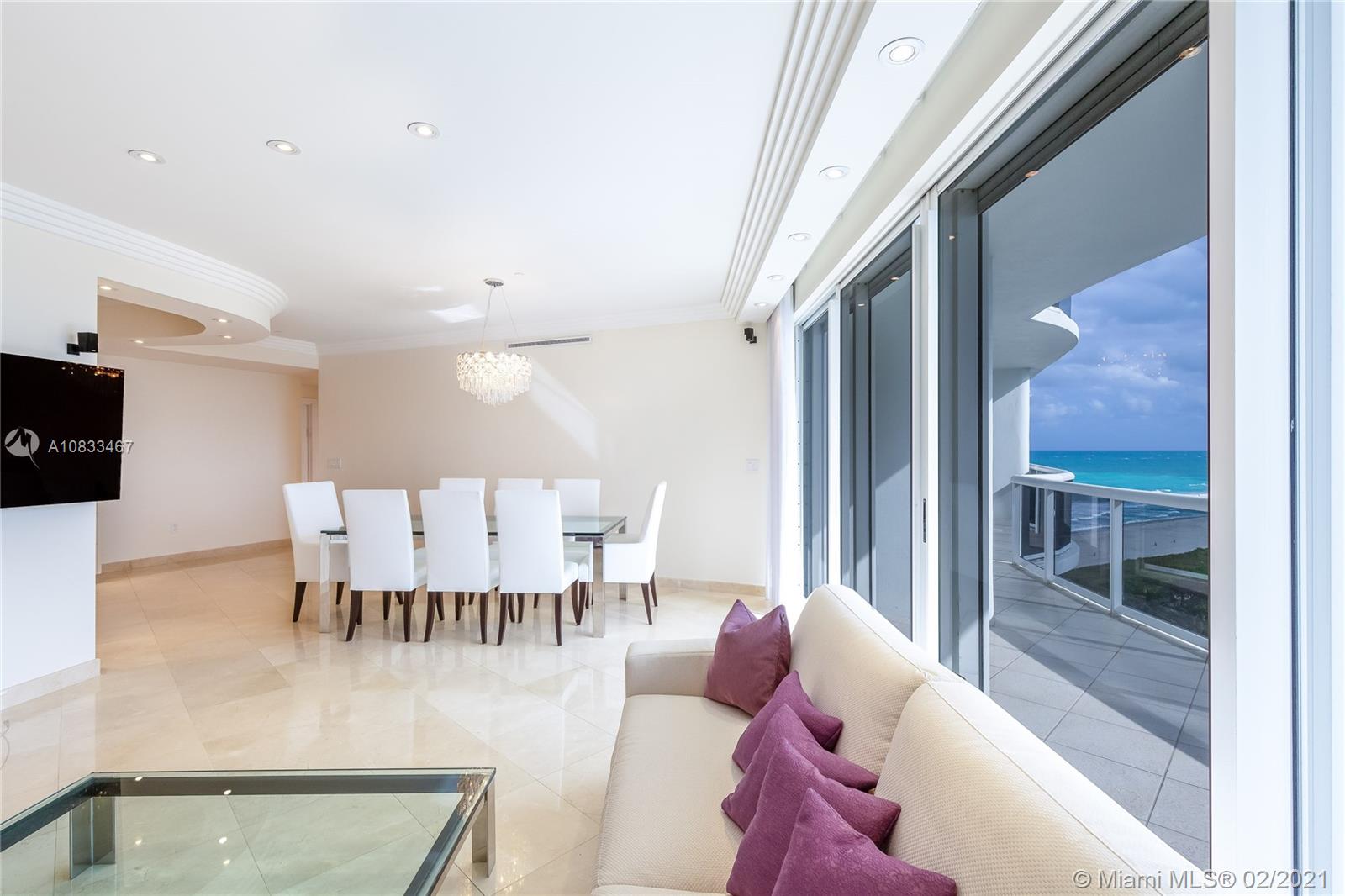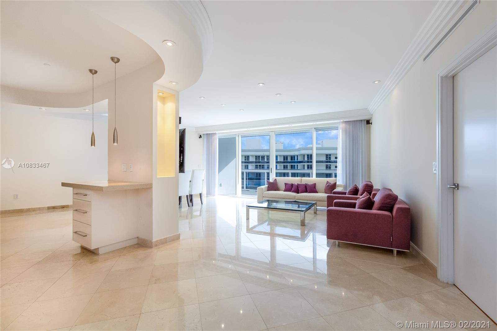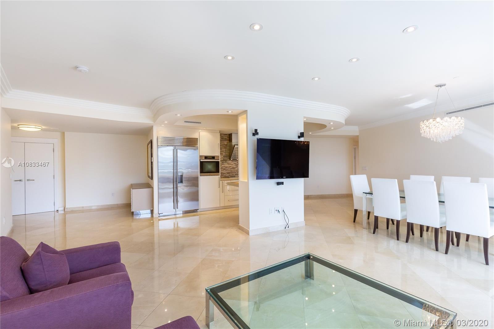 A very Special majestic tower condo in Prominent Bal Harbour! This spacious unit 3/2.5 bedrooms & baths is offering spectacular views of the ocean, Intracoastal & the Miami skyline. Private elevator will take you up to your villa in the sky on the ocean. Spacious living room offers you plenty of room for entertainment. There is a spacious balcony w/access from all rooms, 10 ft high floor to ceiling windows. Beautifully upgraded with exquisite materials throughout the apartment. Marble floors in the living rooms and wood floors in bedrooms. Newer kitchen with Miele appliances and much more. This luxurious property offers concierge service, high level security, valet, a private dining restaurant, fitness, tennis and basketball court & a billiard room. Invite your clients! Price reduced.