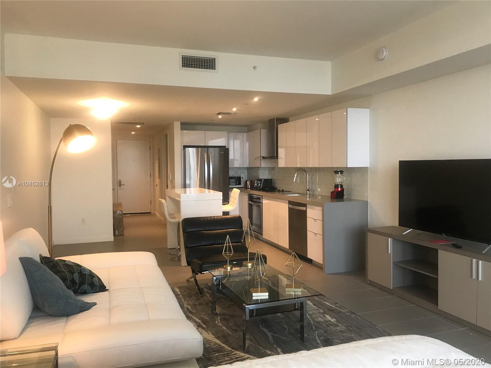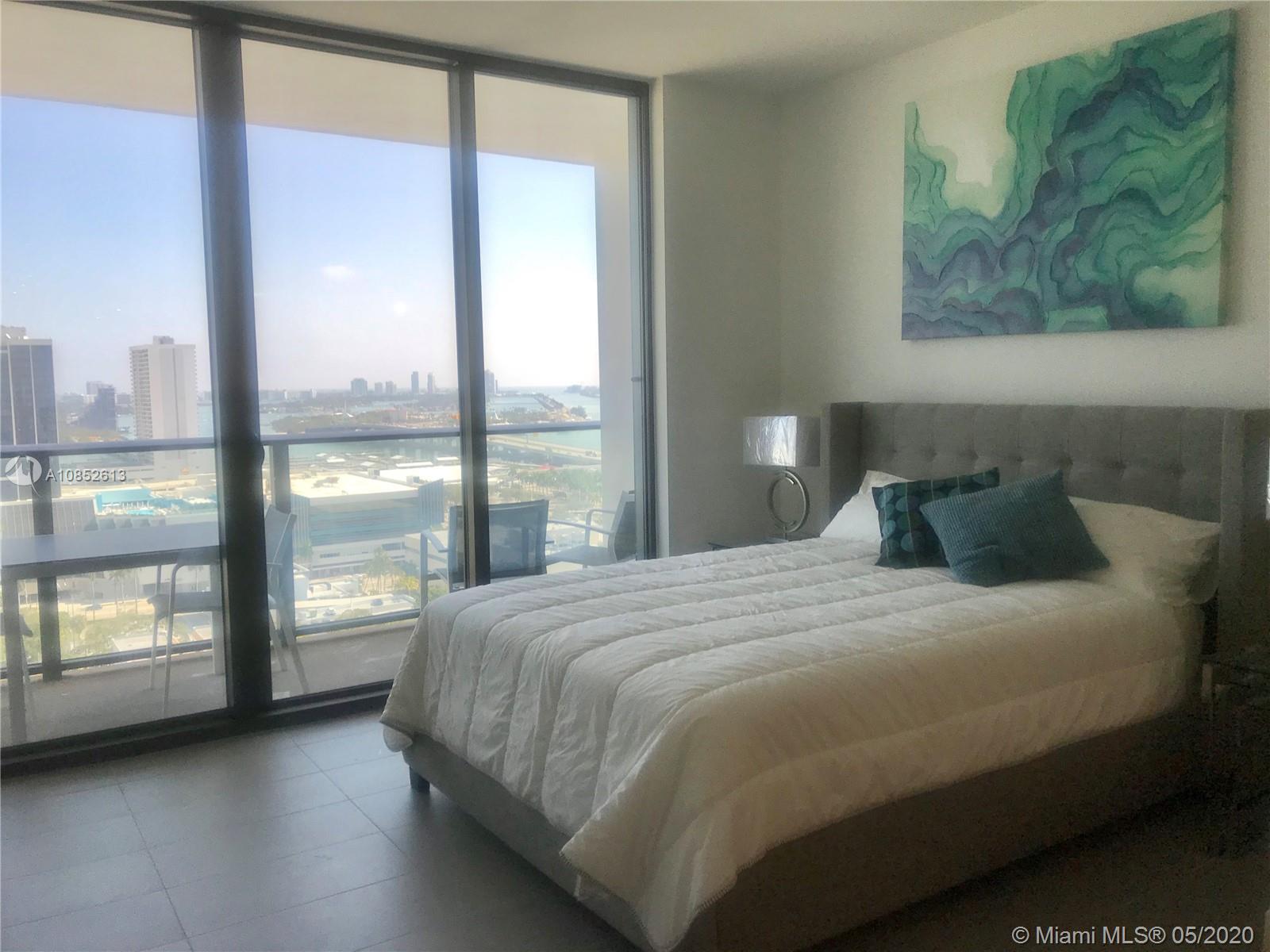 Enjoy the stunning views of the bay and the downtown skyline from this new studio. This furnished unit offers an open floor plan, stainless steel appliances, window treatment, floor to ceiling windows, porcelain floors, bright white combined kitchen cabinets of European design and quartz countertop. The building has 3 swimming pools, sauna, jacuzzi, state-of-the-art gym, yoga and meditation room, racket, barbecue area, massage rooms, movie screening room, modern games room and outdoor lounge. Live close to everything, one block from Free Metro, Arsht Center, museums, minutes from downtown, MIA Airport, Brickell, Wyndwood and Miami Beach. Pets welcome! 620 SQFT