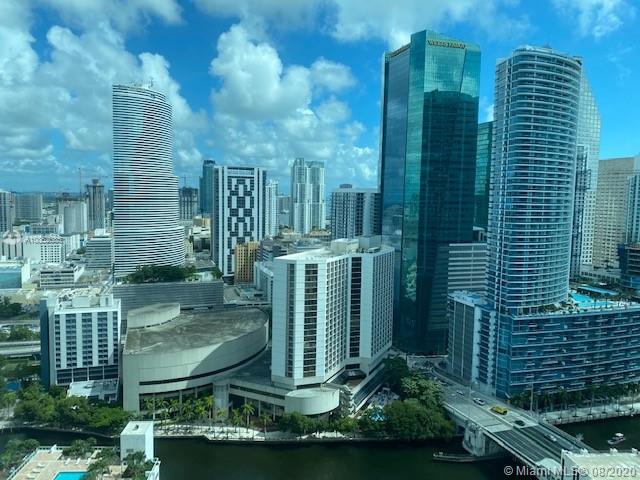 Breathtaking 2 bed 2 bath (double masters) with amazing views of bay and Miami river, wood and marble floors Stainless appliances, 42nd rooftop pool, and sundeck. 11th floor pool and pool side cabanas, concierge 24/7, valet parking, spa, gym, with 24/7 security in lobby area. Walking distance to metro mover, Brickell center, Downtown, Arena and performing arts. Minimum lease allowed 30 days. Owner finance with 50% down.
