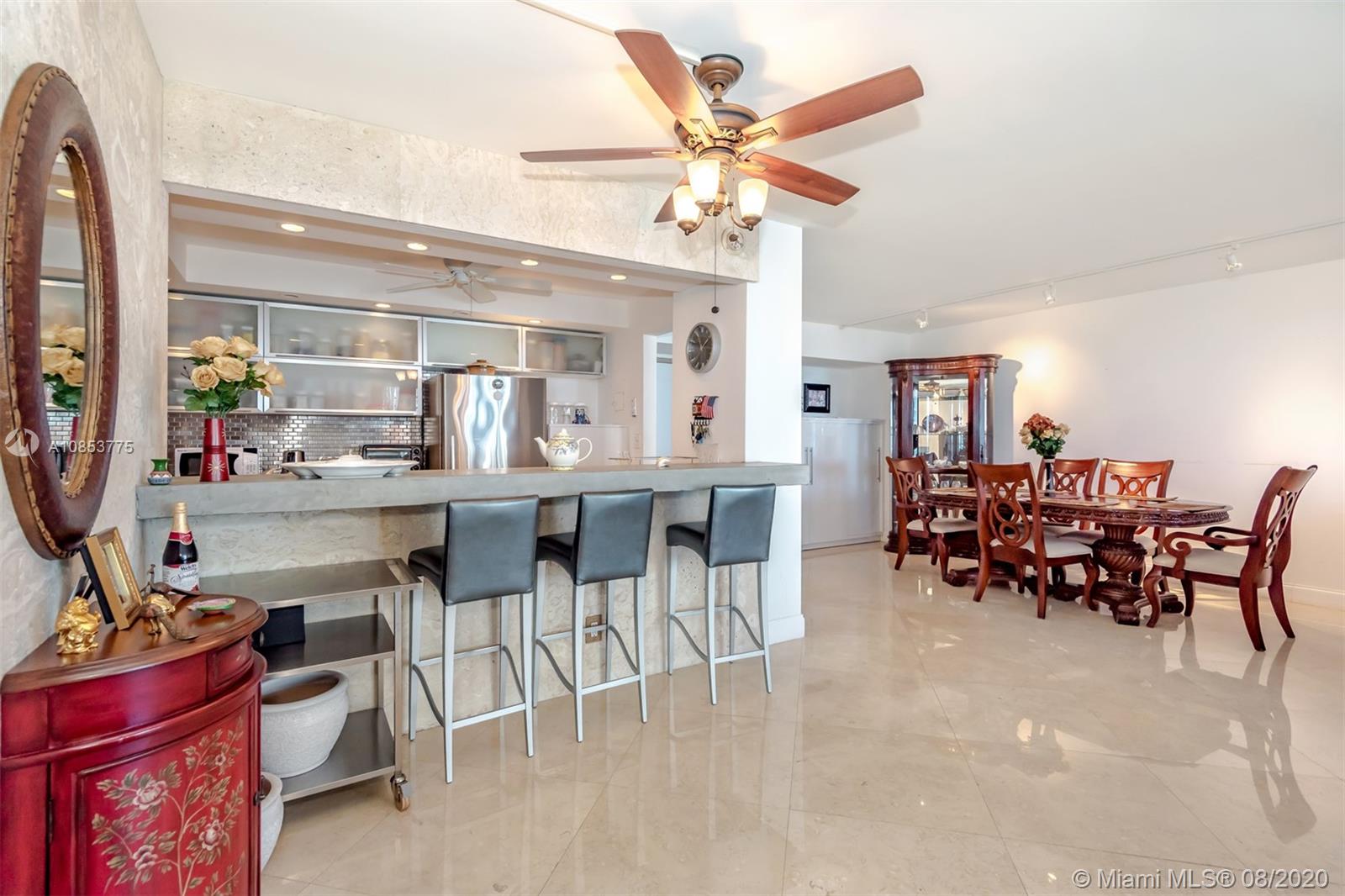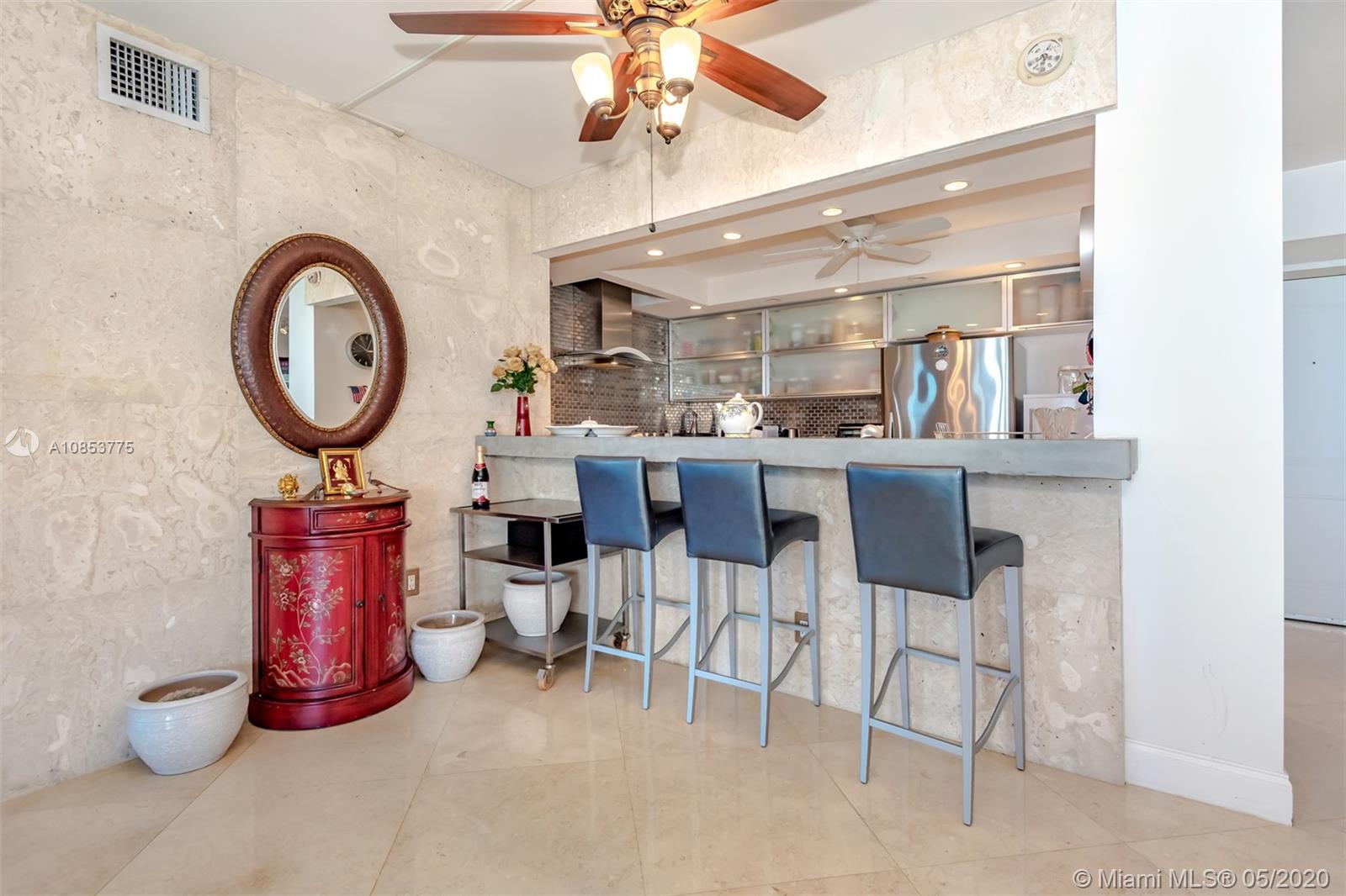 Spectacular direct open ocean view, and Haulover Park, Elegant, and bright 2 bedroom made into one spacious one Bedroom, 2 full bathrooms, Easily converted back into a 2 bedroom, open, and completed renovated art deco kitchen, marble floor in dining and living room, wood floor in master bedroom, building offer resort style amenities including 2 tennis courts, 2 gyms, great large pool, 24 hr valet and concierge service. building is right across ocean, minutes from Aventura and Bal Harbor. Near dining, shopping, entertainment, airports. A MUST SEE!!