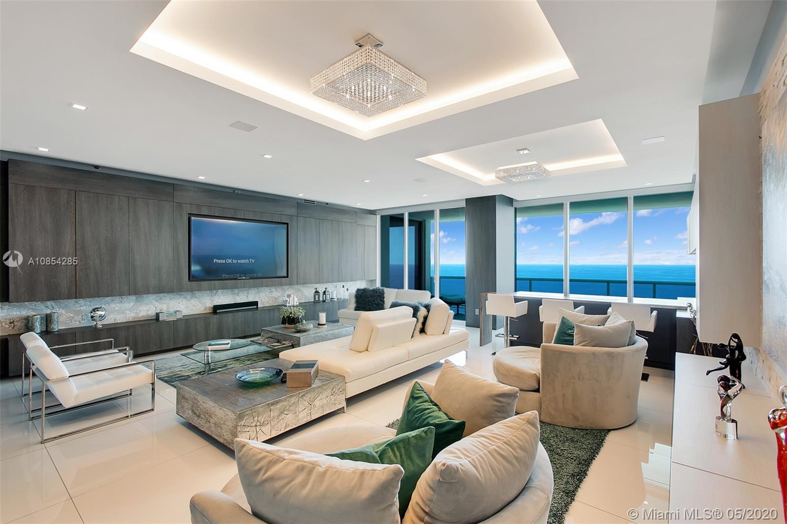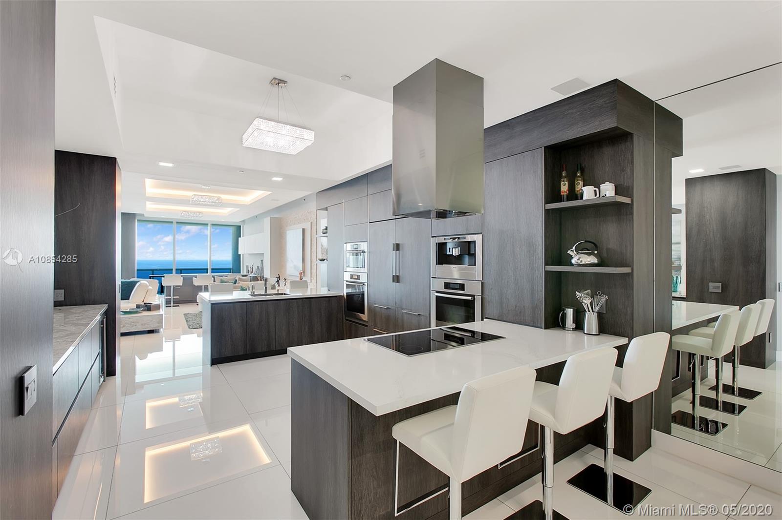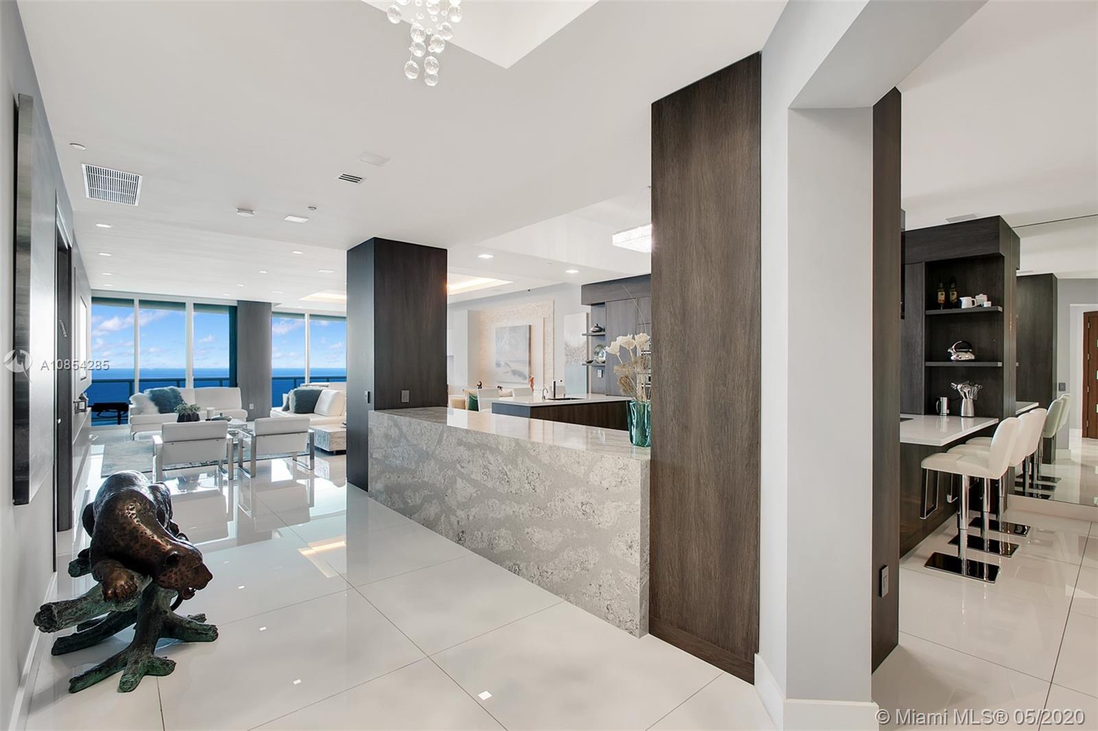 WOW! The Crown Jewel of Luxurious Trump Hollywood! "Sky view apartment top floor" Panoramic direct Ocean views! No expense spared! 3 bd/ 3.5 ba, family room, Gourmet European kitchen w/ high quality Miele & Sub-Zero appliances. Private elevator entrance, high ceilings, floor to ceiling glass windows, very expensive Italian doors throughout, & spacious terrace. OVER $1 MIL SPENT! Direct Oceanfront flow thru unit w/ due east & west terrace views. Breathtaking views in every direction. Finest Finishes! Stunning! Exquisite Lobby, Unsurpassed Amenities incl. Breakfast Room, Wine + Cigar Lounges, Fitness Center, Spa, Massage Rooms, Theater, Party Room, Caterer's Kitchen, Pool + Beach Service, 24 hr Security, Valet.