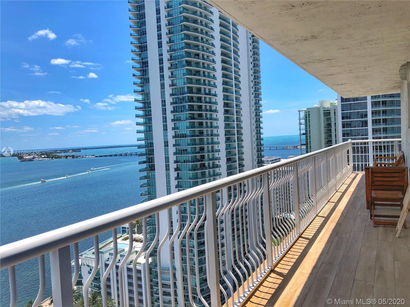 Beautiful views from the wraparound balconies, unobstructed bay views, great location in the residential and financial Brickell area. Wood floors, European style kitchen. Amenities include 24 hr-concierge, 2 pools, fitness center, spa, kids play area, entertainment room, valet and more. Walk to banks, shops and restaurants. No rental restrictions.