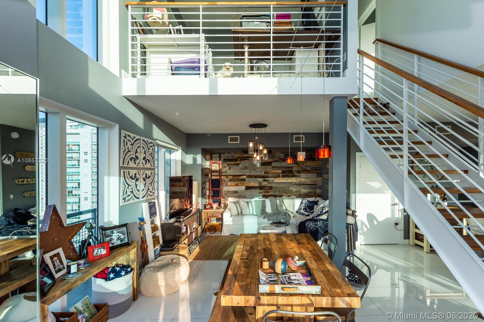 Welcome to Infinity Brickell #2821 the absolute best combination of Modern & Rustic touches for a loft in all of Brickell. Features include: 24x24 white glass Porcelain tile throughout, upgraded Quartz Counter tops & kitchen island, fully upgraded walnut stairs & railings, rustic paneled living room wall, newly installed rustic barn door replacing the washer/dryer door, elegantly upgraded master bathroom & half bath, newly installed AC unit, custom master bedroom closet & guest bedroom closets and more. Take advantage of the sweeping wrap around terrace with floor to ceiling windows throughout allowing for the most fantastic sunset, skyline & panoramic views in all of Miami. If you are looking for a completely upgraded and stylish loft in Brickell don’t miss this amazing opportunity.
